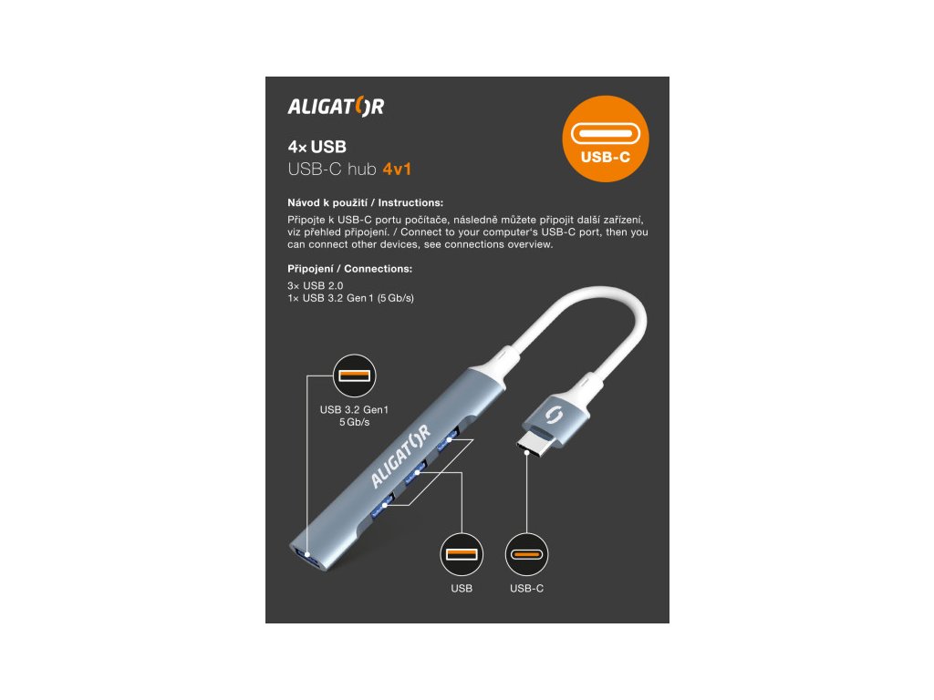 Aligator Hub USB-C (M) na 4x USB (F) s podporou USB 3.2