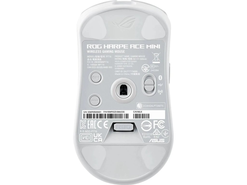 ASUS Herní myš ROG Harpe Ace Mini, Bezdrátová BT, RF 2.4GHz, bílá