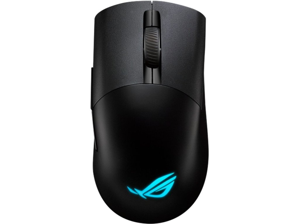 The ROG Keris Wireless AimPoint lightweight 75-gram wireless RGB gaming mouse features a 36,000 dpi ROG AimPoint optical sensor, tri-mode connectivity, ROG SpeedNova wireless technology, swappable mouse switches, ROG Micro Switches, PBT buttons, ROG Paracord, 100% PTFE mouse feet, five programmable buttons, ROG mouse grip tape.