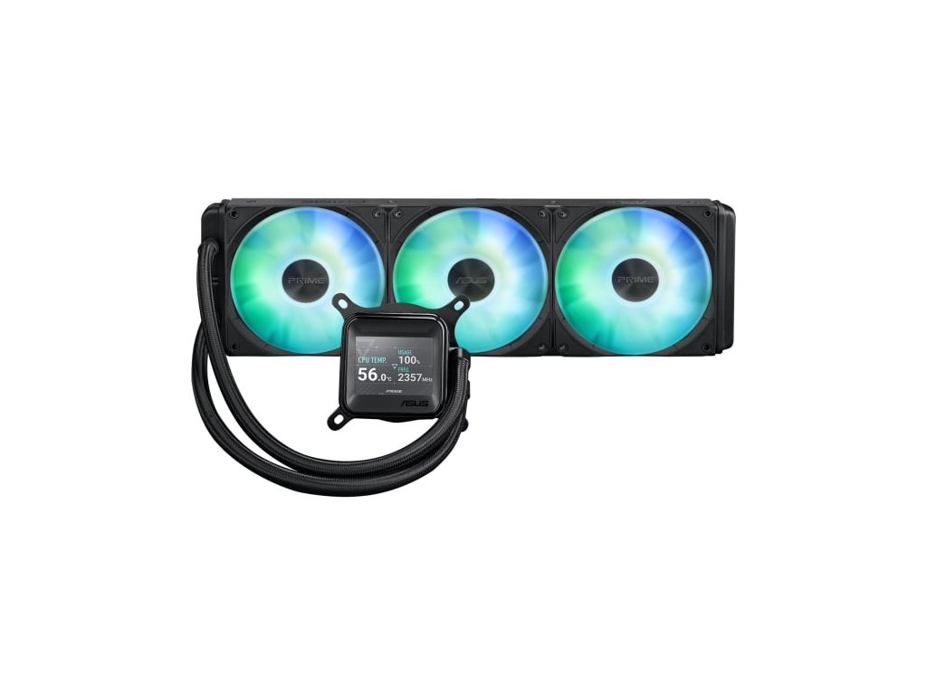 Ventilátor Velikost: 3 × 120 mm ventilátory Model ventilátoru: PRIME LC MF-12C ARGB Režim ovládání: PWM / DC Rychlost: 800–2500 ot./min ±10 % Rozměry: 120 × 120 × 25 mm Proudění vzduchu: 77,22 CFM Statický tlak: 5,48 mmH2O Hlučnost: 36,5 dB(A)