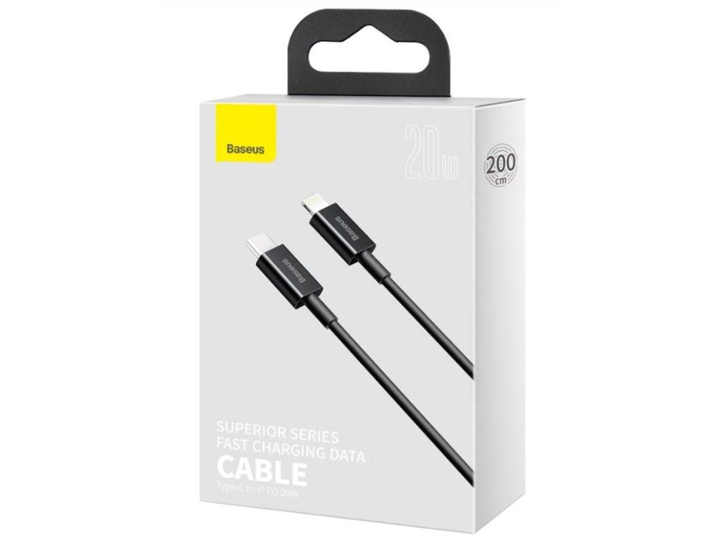 Baseus Superior Fast Charge kabel s USB-C na Lightning a podporou 20W nabíjení. Délka kabelu je 2m, je vyroben z odolného ABS plastu se zesílenými koncovkami pro dlouhou životnost. V balení najdete pásek se suchým zipem pro pohodlné přenášení a skladování. Specifikace - Materiál: ABS+TPE - Nabíjecí výkon 20W a podpora Power Delivery 18W - Přenosová rychlost 480Mbps - Délka 2mDoplňkové parametry