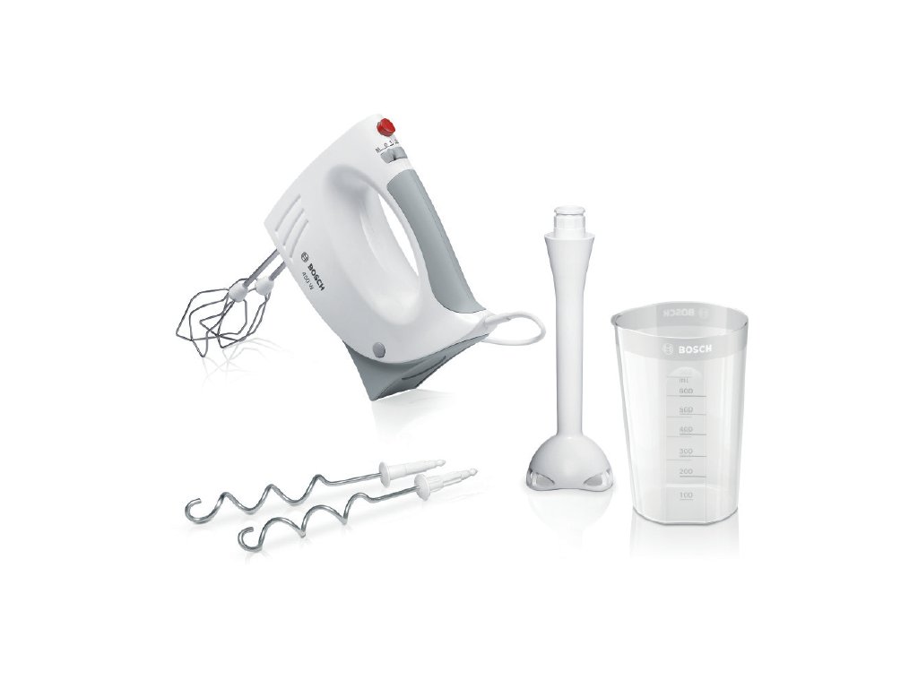 Bosch MFQ3540. Model: Ruční mixér, Barva: Šedá, Bílá, Délka šňůry: 1,4 m. Materiál: Plast. Příkon: 450 W. Šířka: 141 mm, Hloubka: 77 mm, Výška: 201 mmDoplňkové parametry