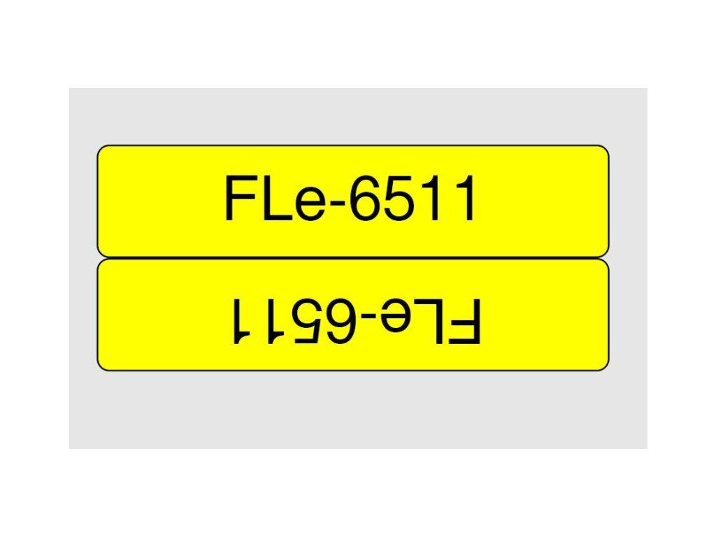 *Jasné a trvanlivé výsledky Páska je vyvinuta pro snadné značení elektro, síťových a jiných kabelů, optických vláken,.. Jedná se o černý text na žlutém podkladu. Páska obsahuje 72 štítků s rozměry 45 mm x 21 mm (po nalepení jsou rozměry 45 mm x 10,5 mm). Tato popisovací černo-žlutá páska FLe-6511 je ideální jak pro identifikaci kabelů tak pro univerzální použití. Jednoduše vytiskněte text nebo čárový kód na dvě části předřezaného štítku. Připevněte proužek štítku kolem kabelu, poté vezměte vytištěný předřezaný štítek a jednu polovinu přilepte na proužek štítku a poté jej přeložte přes druhou polovinu. Lze použít ve vybraných Brother tiskárnách umožňujících potisk FLE pásek.
