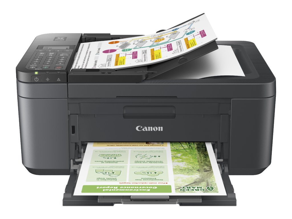 Canon PIXMA TR4755i. Tisková technologie: InkJet, Tisk: Barevný tisk, Maximální rozlišení: 4800 x 1200 DPI. Kopírování: Barevné kopírování. Skenování: Barevné skenování, Rozlišení optického skenování: 600 x 1200 DPI. Faxování: Barevné faxování. Oboustranné funkce: Kopírovat, Vytisknout. Maximální velikost papíru série A standardu ISO: A4. Wi-Fi. Přímý tisk. Barva: ČernáDoplňkové parametry