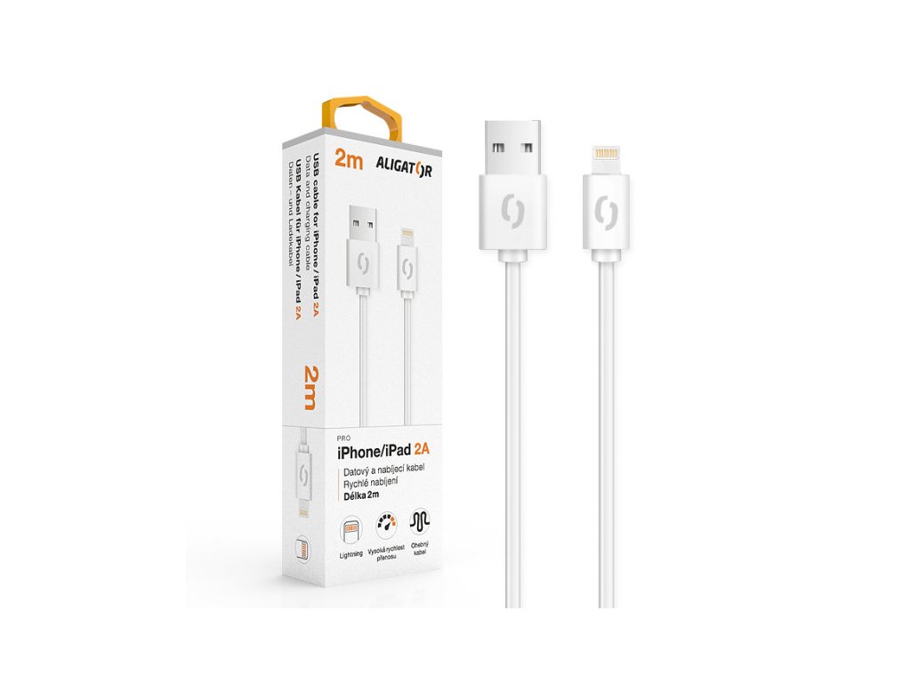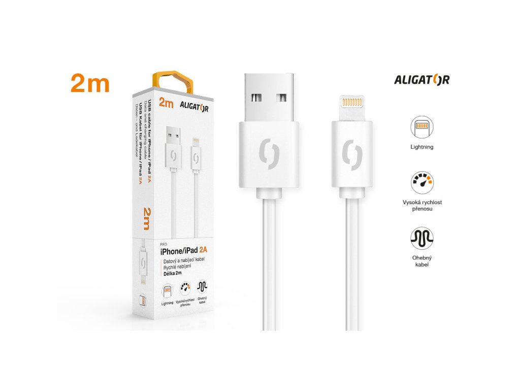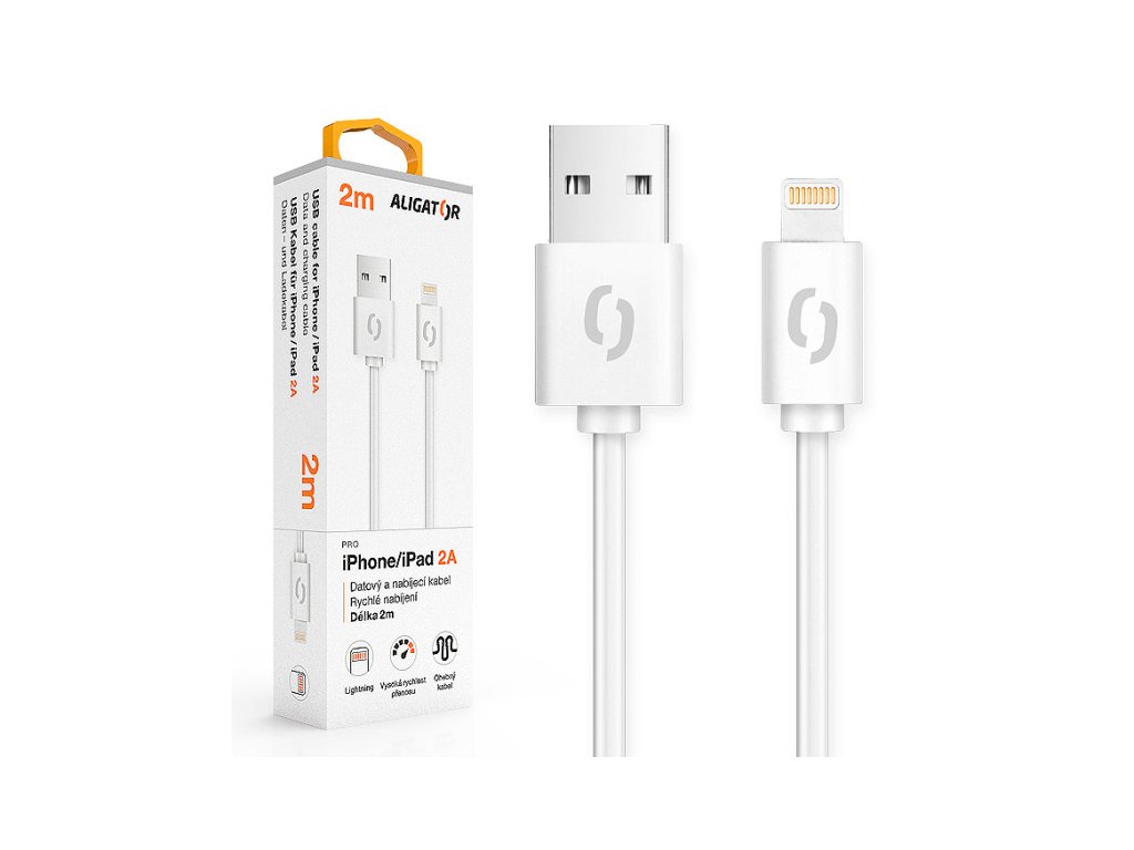 Datový kabel ALIGATOR 2A iPhone lightning 2m, bílý