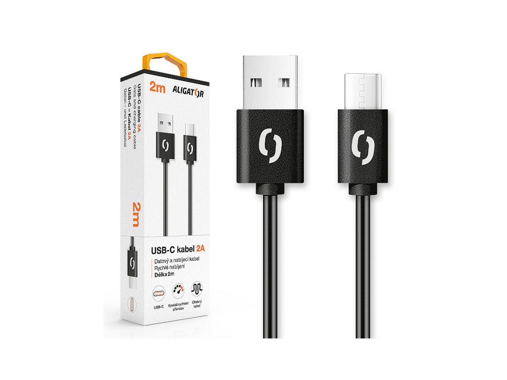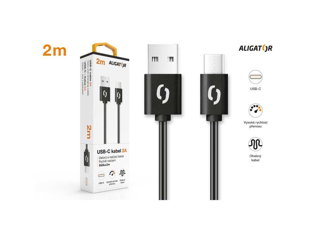 Datový kabel ALIGATOR 2A USB-C 2m, černý