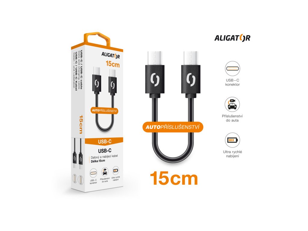 Datový kabel ALIGATOR POWER USB-C/USB-C 15cm, černý