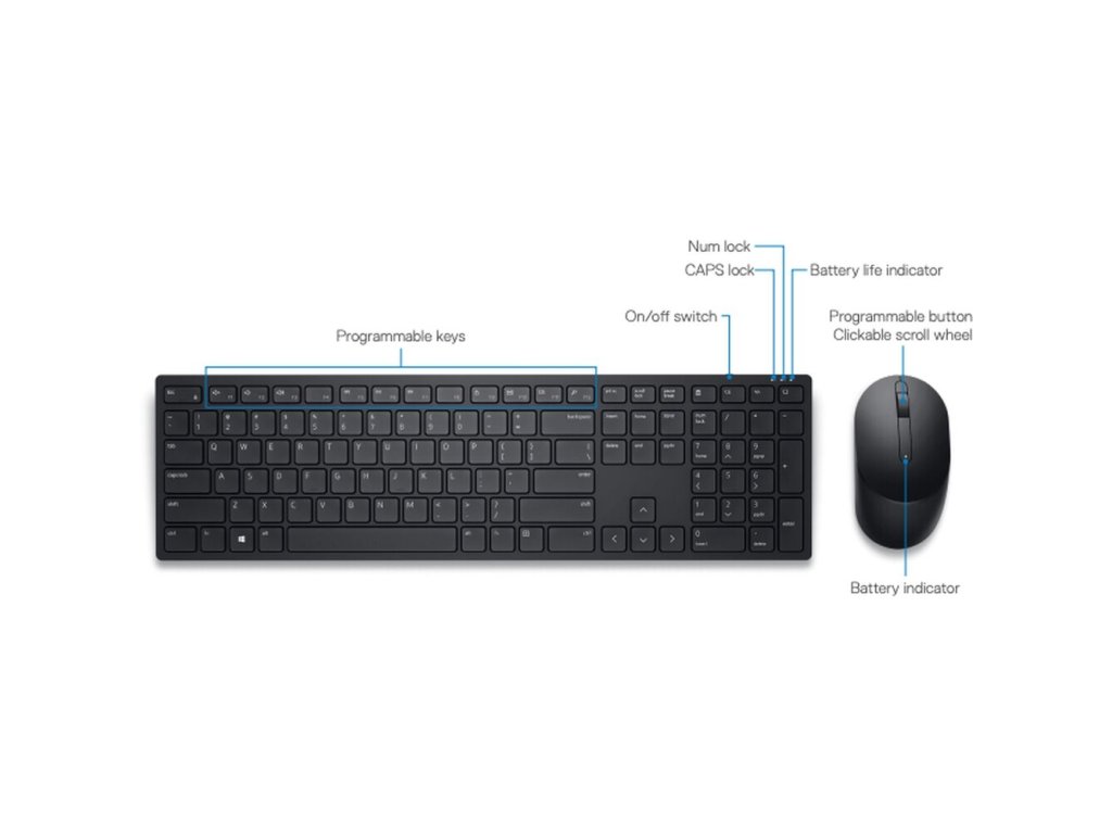 Dell KM5221W bezdrátová klávesnice a myš US/International Produktivita na dosah ruky Zvyšte svou celodenní produktivitu s touto kombinací bezdrátové klávesnice a myši RF 2,4 GHz. S 12 programovatelnými klávesami a 1 programovatelným rolovacím kolečkem získáte rychlý přístup k často používaným aplikacím, složkám a funkcím. Bezdrátová klávesnice plné velikosti je dodávána s vyhrazenou numerickou klávesnicí, funkčními klávesami a naprogramovanými předvolbami, které mohou zvýšit vaši efektivitu. Snadná správa Snadno procházejte mezi monitory různých rozlišení doma nebo v kanceláři. Software Dell Peripheral Manager (DPM) vám umožňuje spravovat vstupní zařízení a přizpůsobovat se vašim preferovaným přednastaveným hodnotám DPI na 1 000, 1 600, 2 400 nebo 4 000. S DPM můžete přizpůsobit klávesové zkratky a tlačítka, spárovat zařízení, upravit DPI, zkontrolovat stav baterie a připojení a aktualizovat na nejnovější firmware. Pracujte v pohodlí Pracujte s jednou z nejtišších bezdrátových klávesnic, ať už při konferenčním hovoru nebo v blízkosti ostatních. Symetricky navržená bezdrátová myš je skvělá pro leváky i praváky. Naklápěcí nohy nabízejí dva nastavitelné úhly pro klávesnici, což vám dává flexibilitu při výběru preferované polohy pro psaní. Odolný a bezpečný Bezdrátová klávesnice a myš Dell Pro jsou vyrobeny tak, že mají jednu z nejdelěích výdrží baterie a to až 36 měsíců. Můžete si být jisti, že tato kombinace klávesnice a myši byla důkladně testována, aby bylo zajištěno bezproblémové připojení k vašemu počítači Dell. Klávesnice nabízí 128bitové šifrování AES (Advanced Encryption Standard) chránící přenos dat mezi vašimi počítači a zařízeními a poskytuje vám během psaní zabezpečené připojení. Minimalizujte riziko odstávky pomocí tříleté služby Advanced Exchange Service. Technické specifikace Typ zařízení: Sada klávesnice a myši Bezdrátový přijímač: USB bezdrátový přijímač Rozhraní: 2,4 GHz Technologie připojení: bezdrátová Funkce kláves: 12 programovatelných kláves F1-F12 Myš - bezdrátová - optická - 1600dpi Počet tlačítek: 3 Černá barva Rozměry (ŠxHxV) / Hmotnost: Klávesnice: 433 x 123 x 34 mm - 400 g Myš: 115,32 x 61,96 x 38,8 mm - 65 g Obsah balení Bezdrátová klávesnice a myš Dell Pro - KM5221W USB přijímač Baterie (klávesnice 2 x AAA / myš 1 x AA) DokumentaceDoplňkové parametry