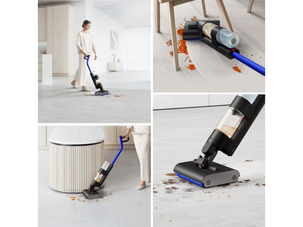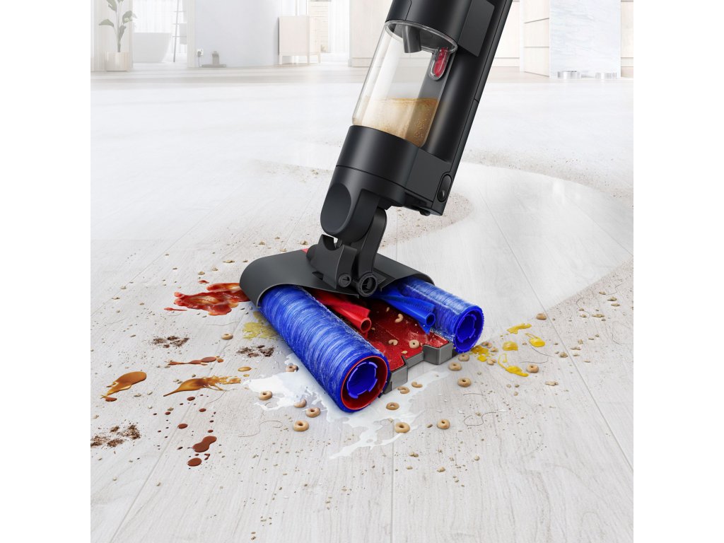 2 válečky se otáčejí proti sobě, takže můžete s vysavačem Dyson WashG1 na mokré vysávání snadno manipulovat a ovládat ho. Je také navržen tak, aby vysával nízko pod nábytkem a v těžko dostupných místech.