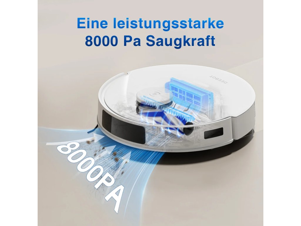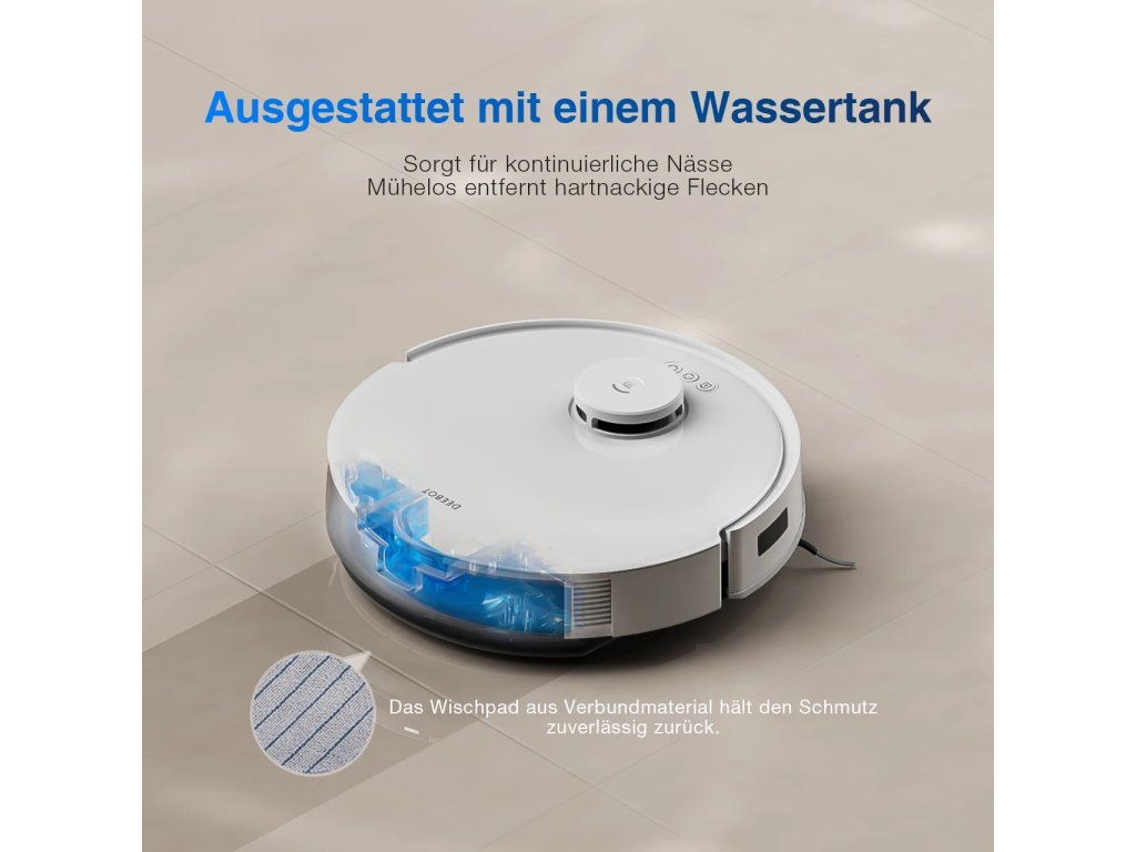 Ecovacs DEEBOT N20. Typ nádoby na prach: Bezsáčkové, Barva: Bílá, Tvar: Kulatý. Množství prachu (celkový): 0,4 l, Hlučnost: 65 dB, Objem zásobníku vody: 0,22 l. Typ baterie: Lithium-ion (Li-ion), Kapacita baterie: 5200 mAh, Doba chodu: 300 min. Výška: 96 mm, Šířka: 353 mm, Hloubka: 351 mmDoplňkové parametry