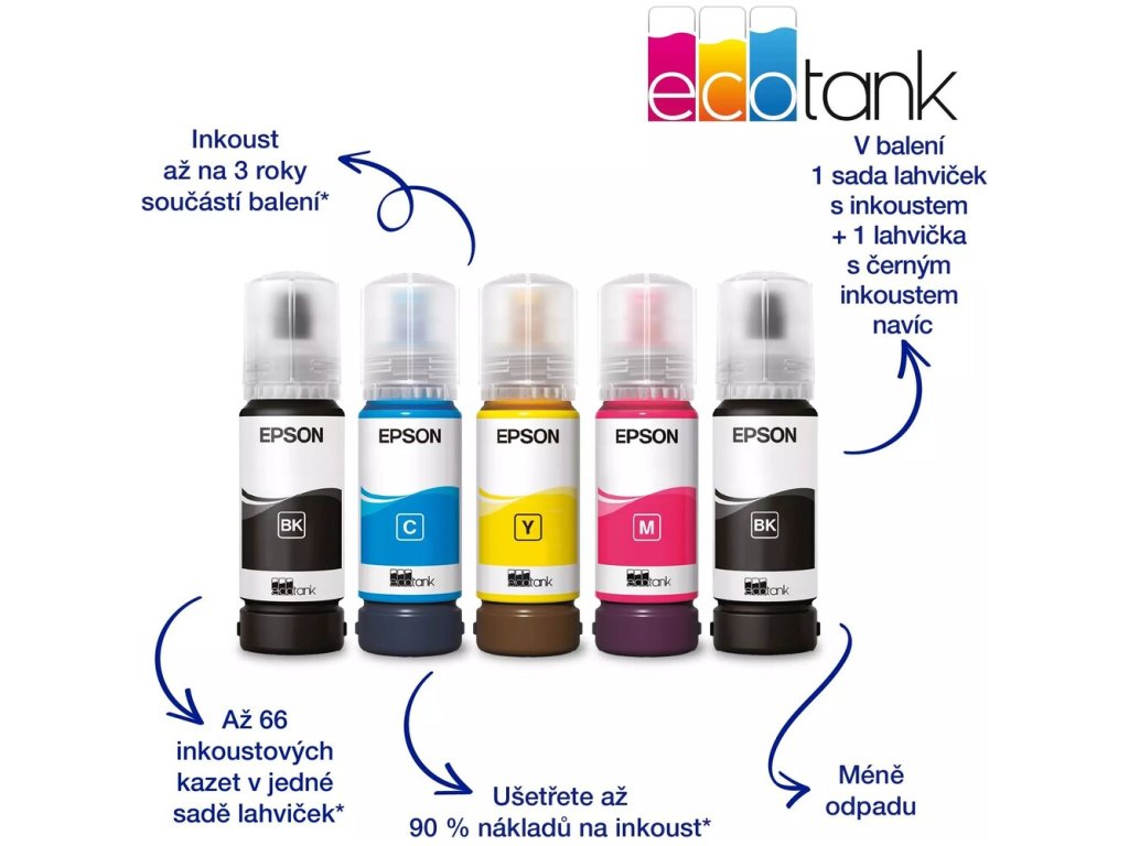 Ušetřete až 90 % nákladů na tisk* s tiskárnami EcoTank od společnosti Epson bez inkoustových kazet. Integrované inkoustové nádržky se snadno doplňují díky speciálně navrženým velkoobjemovým lahvičkám s inkoustem. Bez nutnosti výměny inkoustových kazet a s flexibilními funkcemi připojení je to dokonalá tiskárna pro každého, kdo hledá vysoce kvalitní výtisky za neuvěřitelně nízké náklady na tisk jedné strany.
