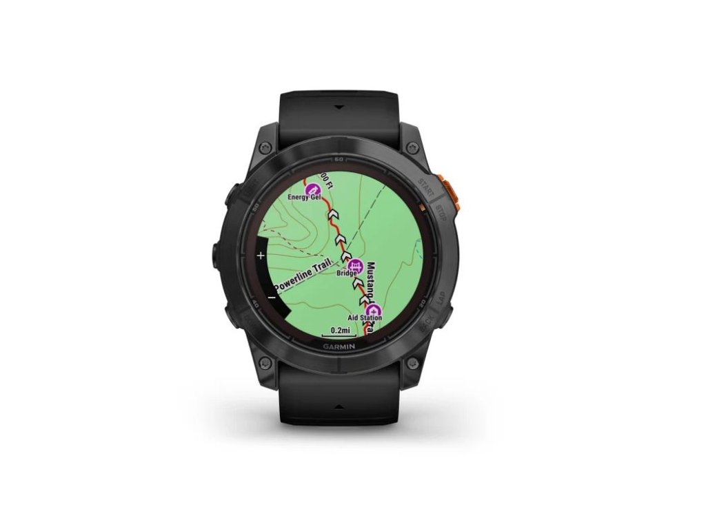 Volitelné předplatné služby Outdoor Maps+ nabízí přístup k prémiovým mapovým podkladům (jen USA) a satelitním snímkům (celý svět) staženým přímo do hodinek7.
