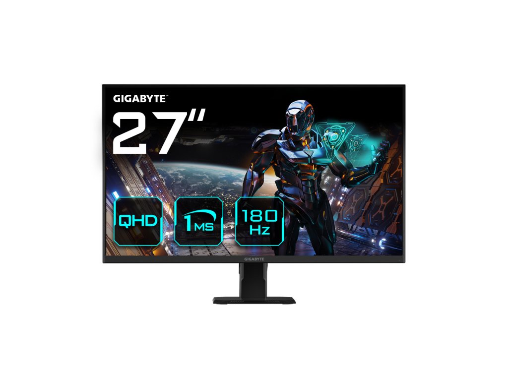 GIGABYTE GS27QA. Úhlopříčka displeje: 68,6 cm (27"), Rozlišení displeje: 2560 x 1440 px, Typ HD rozlišení: Quad HD, Technologie displeje: LCD, Povrch displeje: Matný, Odezva: 1 ms, Vodorovný pozorovací úhel: 178°, Svislý porozovací úhel: 178°. Podpora standardu VESA pro montáž. Barva: ČernáDoplňkové parametry
