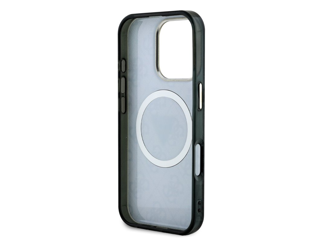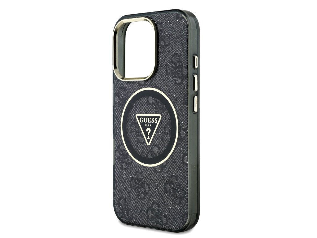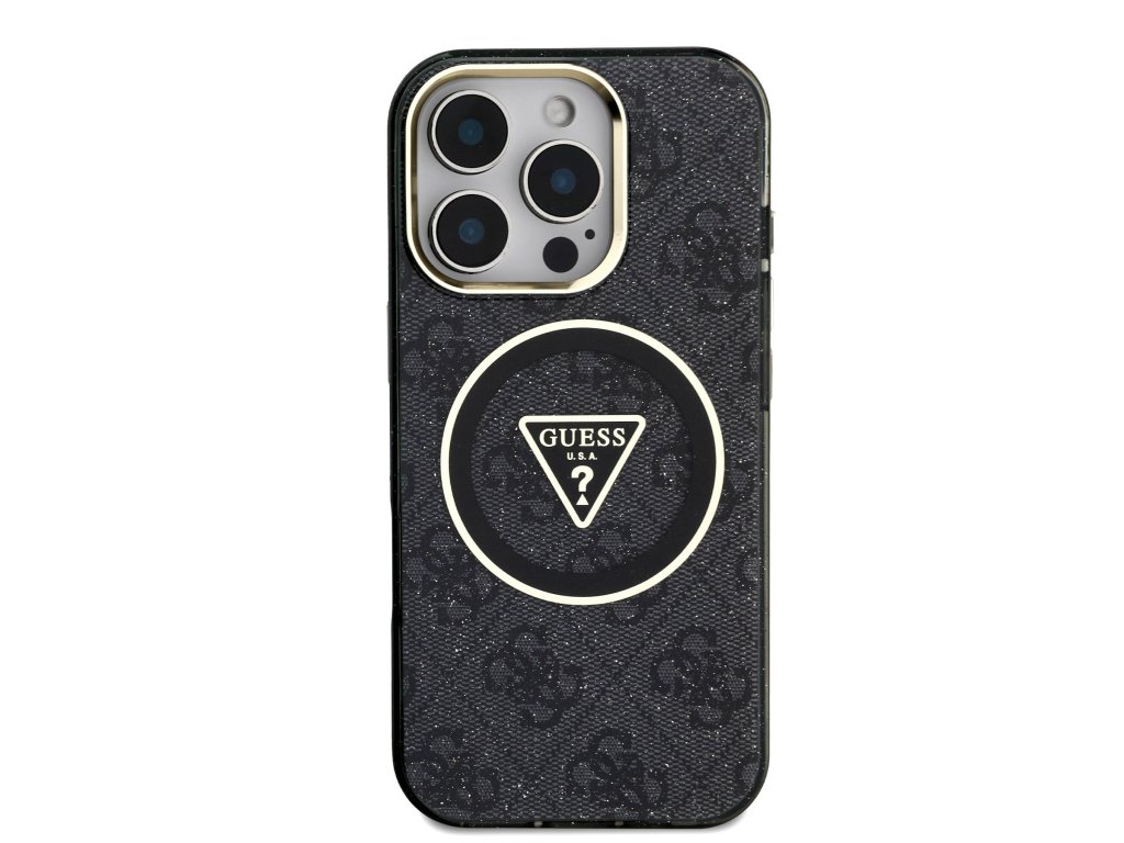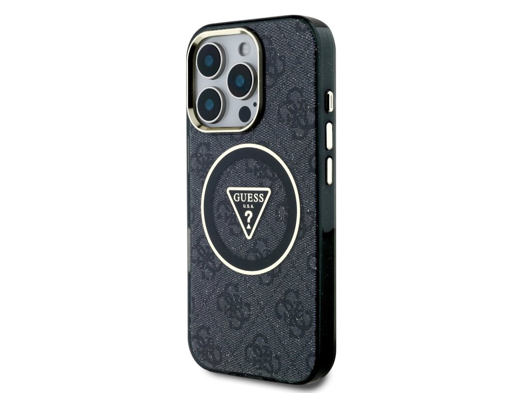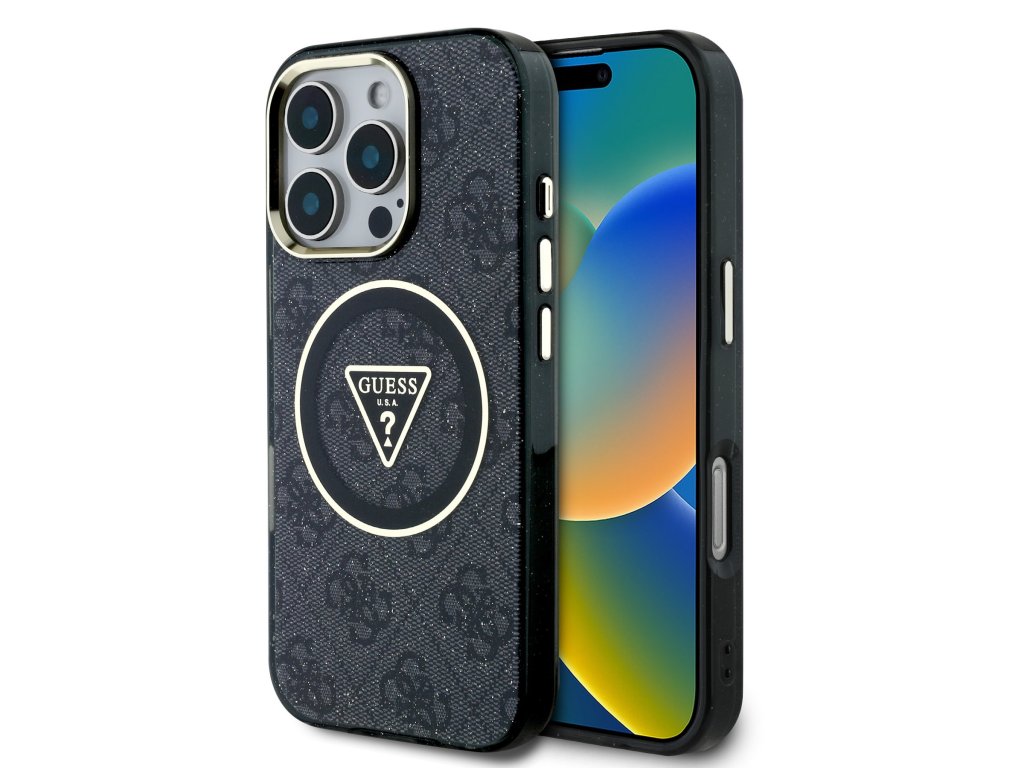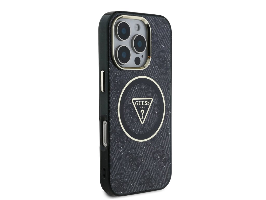 Guess IML 4G Glitter and Triangle Logo MagSafe Zadní Kryt pro iPhone 16 Pro Max Black