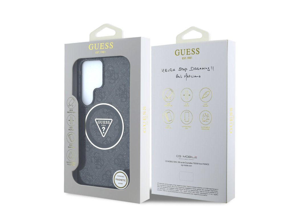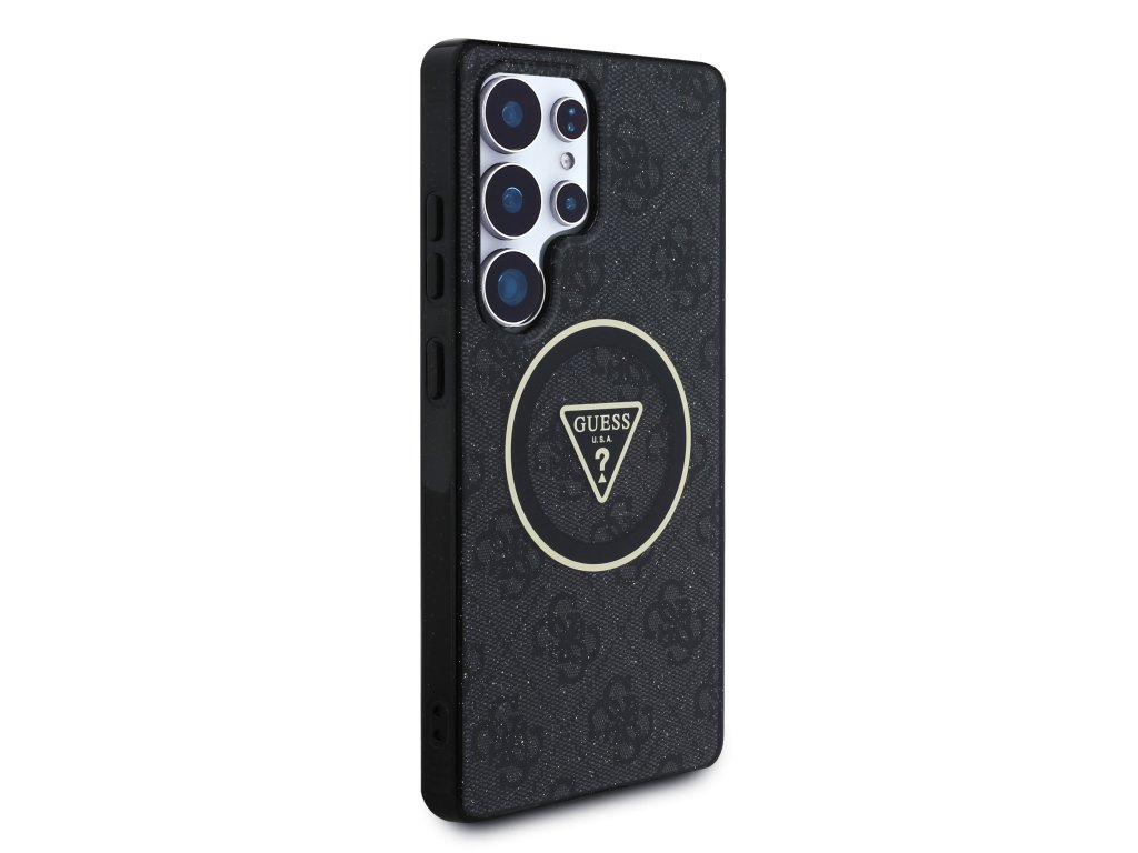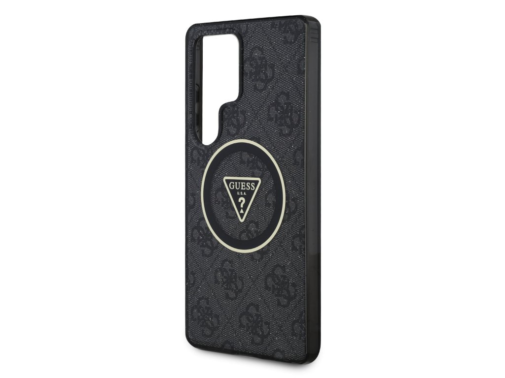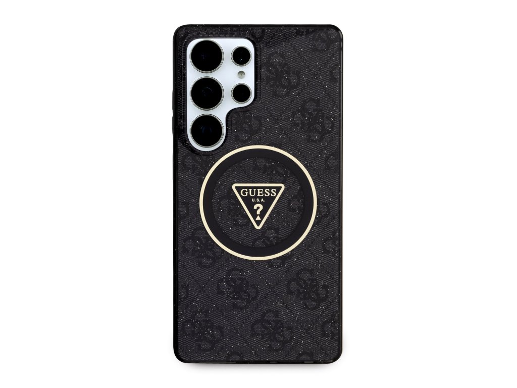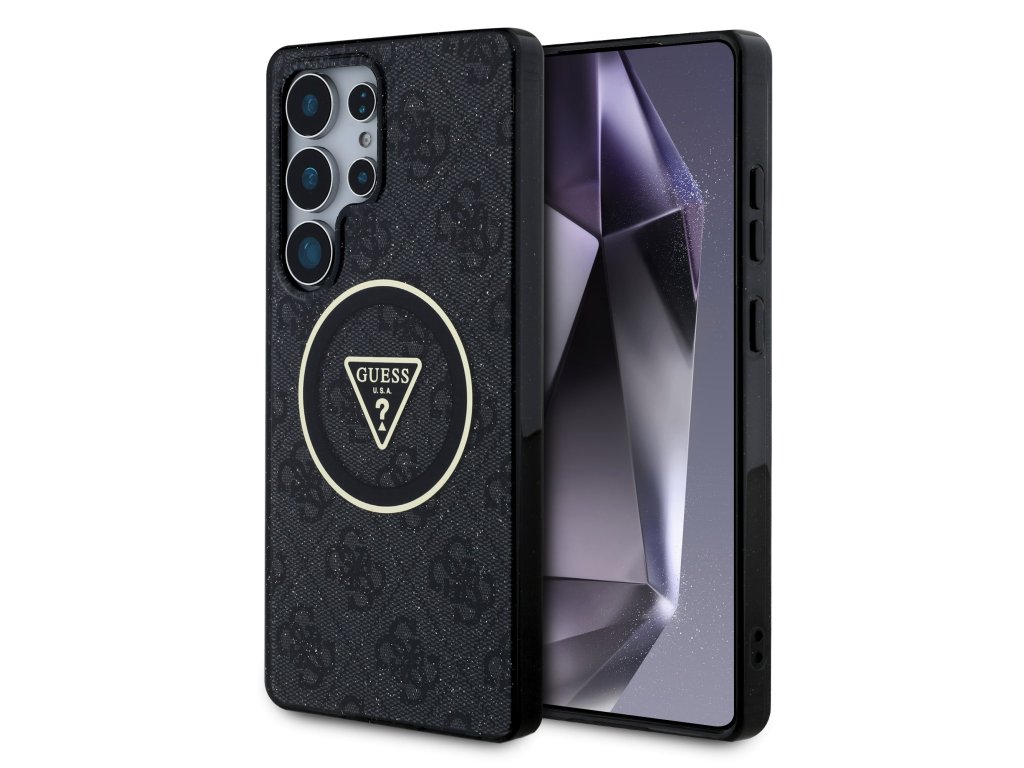 Guess IML 4G Glitter and Triangle Logo MagSafe Zadní Kryt pro Samsung Galaxy S25 Ultra Black