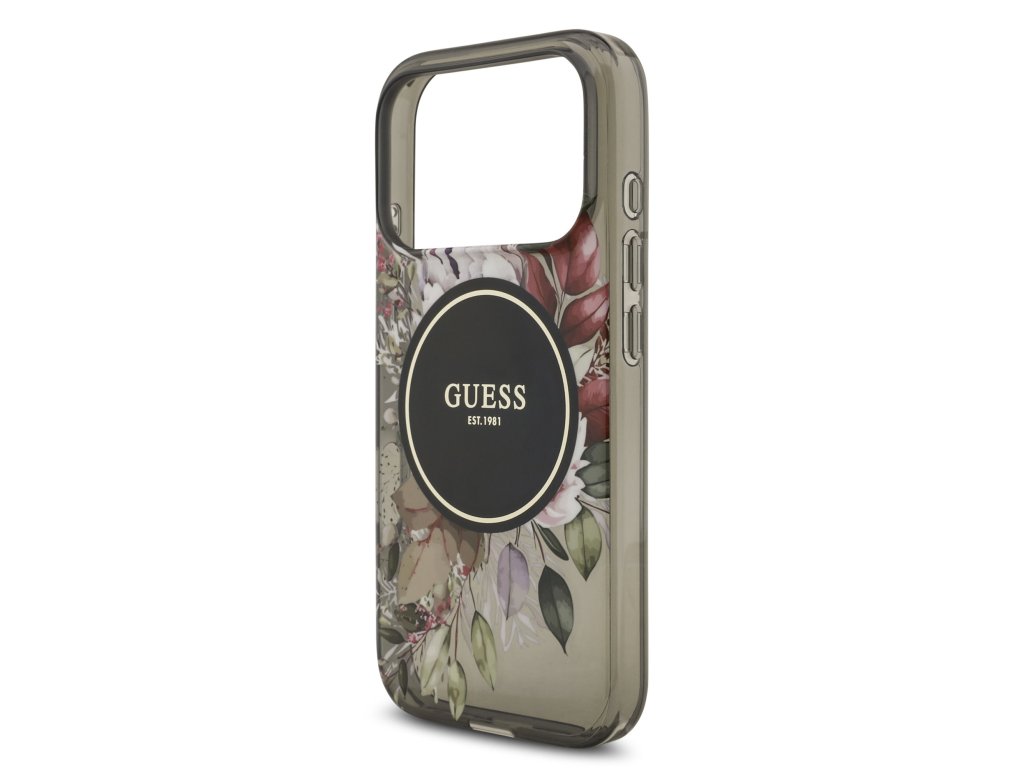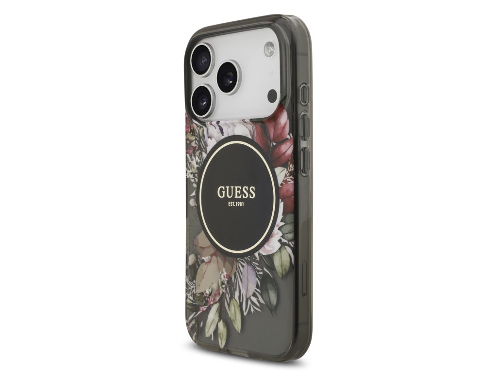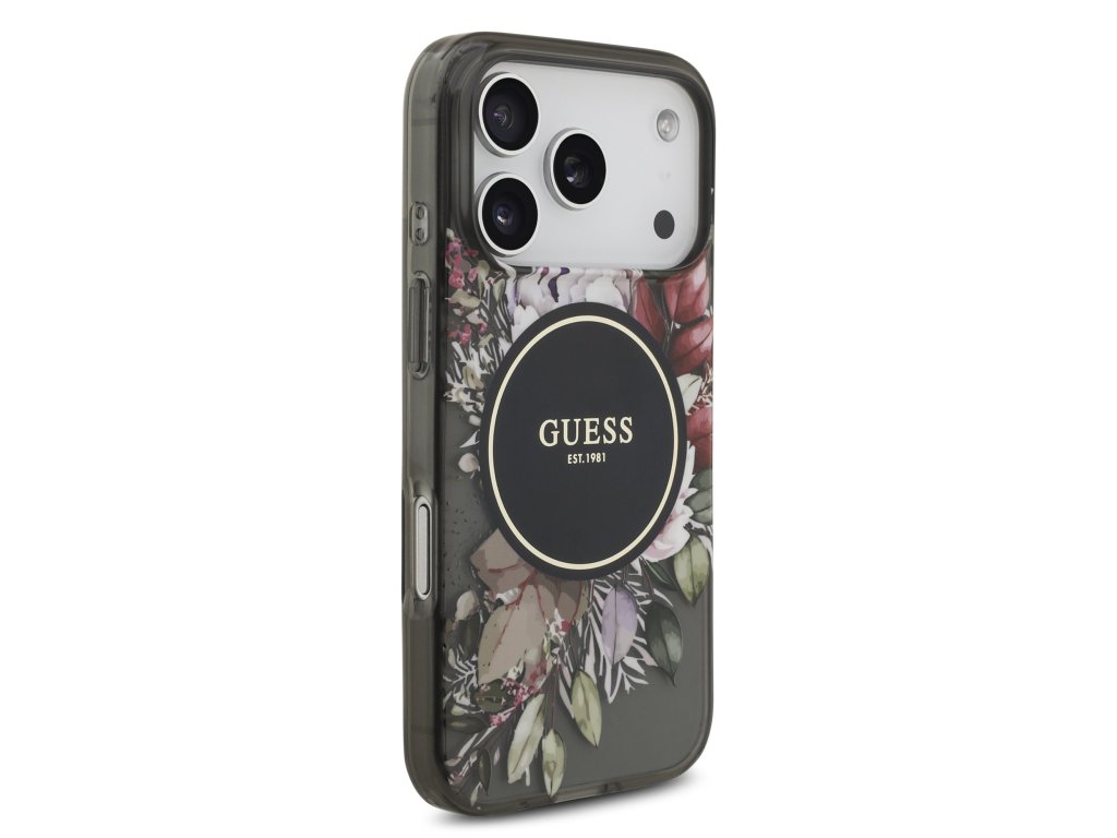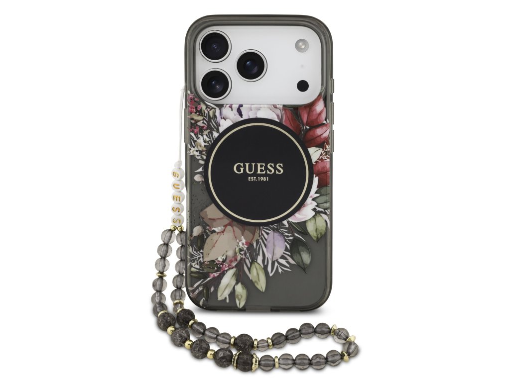 Guess IML Flowers Strap MagSafe Zadní Kryt pro iPhone 17 Pro Black