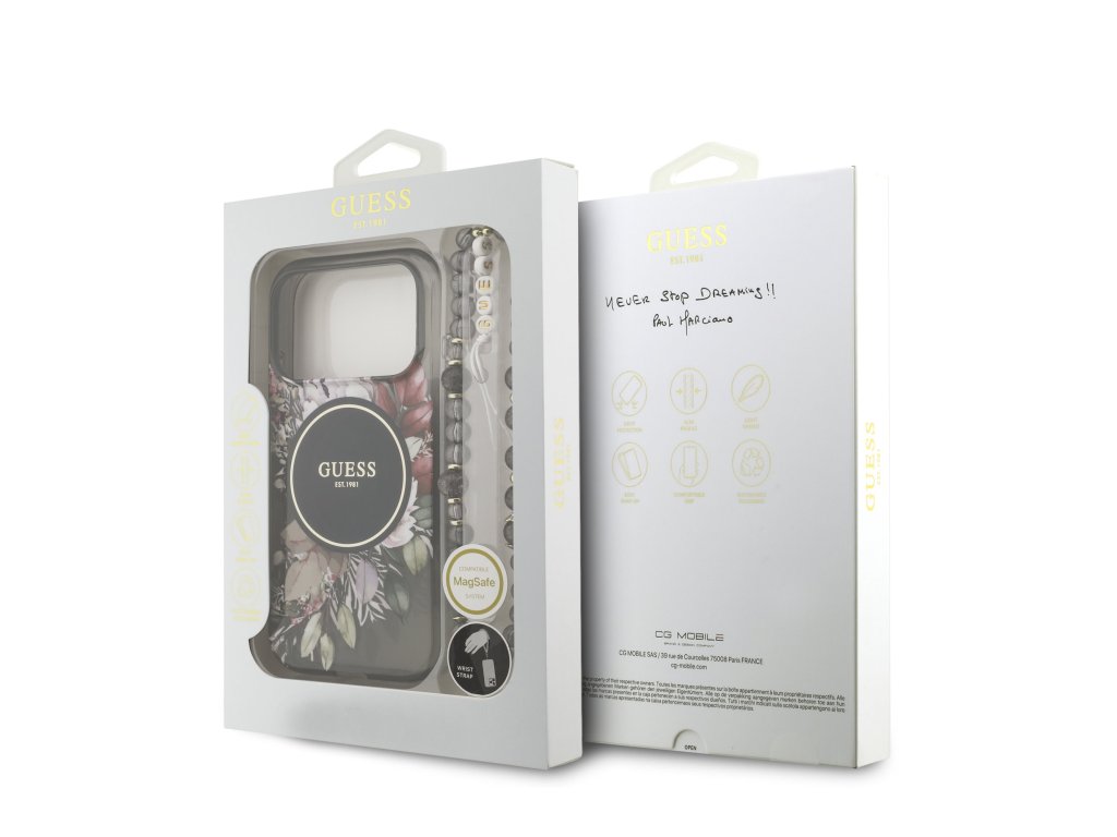 Guess IML Flower Pearl Strap MagSafe zadní kryt na telefon je skvělým doplňkem pro všechny milovníky stylu a praktičnosti. Tento kryt je vyroben z kombinace pevného PC plastu na zadní straně a TPU měkkého plastu na bocích, což vytváří dokonalou symbiózu odolnosti a pohodlí. Díky přesnému tvaru perfektně sedí na telefonu a umožňuje snadný přístup ke všem tlačítkům a konektorům. Tento kryt podporuje technologii MagSafe, což znamená, že je kompatibilní s bezdrátovým nabíjením a dalšími MagSafe doplňky. Design krytu vyniká logem Guess ve zlatém kruhu, což z něj činí nejen praktický, ale i stylový doplněk, který skvěle doplní váš outfit. Součástí krytu je i korálkové poutko, které plní nejen estetickou funkci, ale zajistí také bezpečné držení telefonu v ruce. Pokud hledáte kryt, který kombinuje eleganci a funkčnost, je tento kousek od GUESS tou pravou volbou pro vás. Klíčové vlastnosti: - Originál Guess - Poutko kolem zápěstí součástí krytu - Lehký a odolný kryt z prémiového PC a TPU - Skvěle se drží v ruce a neklouže - Podpora MagSafe - Přesně kopíruje tvar telefonu a umožňuje snadný přístup k tlačítkům a konektorům. - Chrání telefon před prachem a poškrábáním - Stylový a funkční doplněk pro váš telefon i outfitDoplňkové parametry