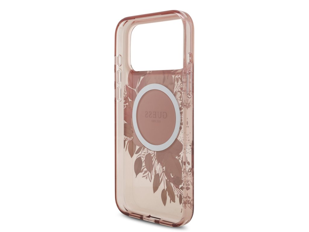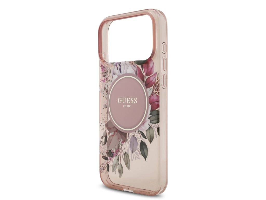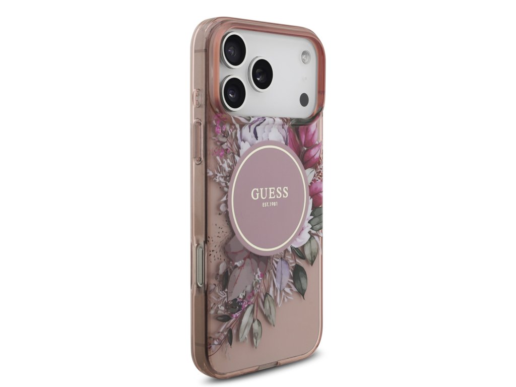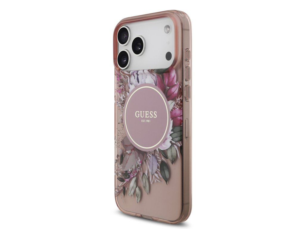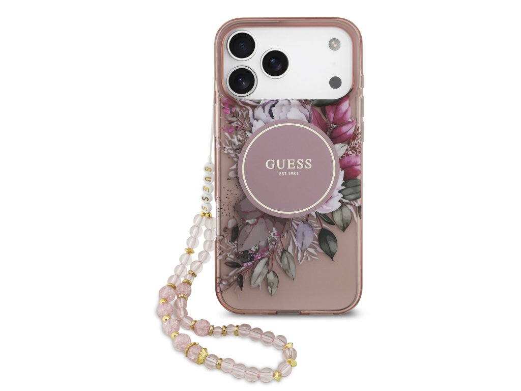 Guess IML Flowers Strap MagSafe Zadní Kryt pro iPhone 17 Pro Max Pink