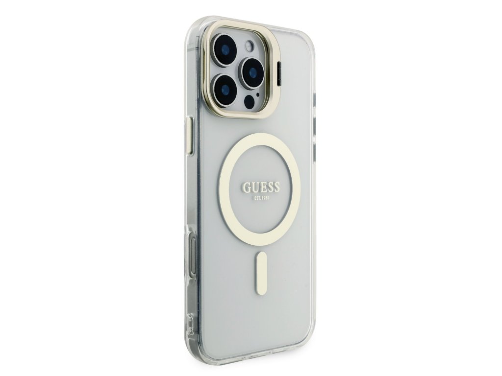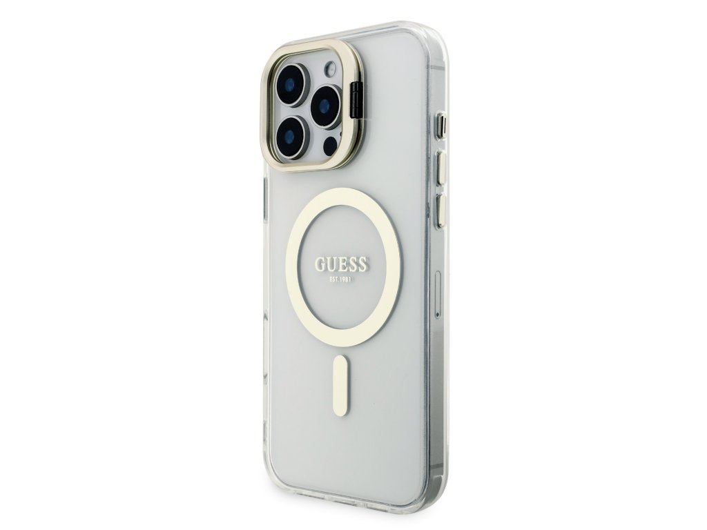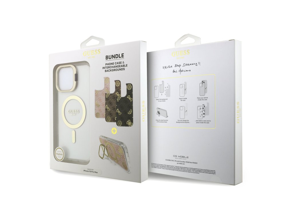 Guess PC/TPU Electroplated Stand Camera Frame MagSafe Zadní Kryt s Vyměnitelným Pozadím pro iPhone 1