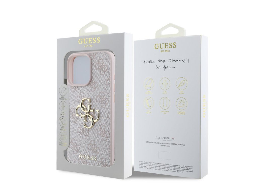 Prémiový zadní kryt Guess PU 4G Metal Logo se vyznačuje elegantním, charakteristickým 4G vzorem, doplněným o logo GUESS. Kryt je vyrobený z lehkého a odolného polyuretanu (PU) s povrchovou úpravou z PU kůže a nabízí tak nejen skvělou ochranu telefonu, ale také pohodlí při používání. Tato povrchová úprava zajišťuje pevný úchop, což minimalizuje riziko, že telefon vyklouzne z ruky. Díky přesnému tvaru perfektně sedí na telefonu a umožňuje snadný přístup ke všem tlačítkům a konektorům. Tento prvotřídní kryt doplněný výrazným 4G logem a je skvělou nabídkou pro lidi, kteří si v módě cení nejen exkluzivního vzhledu, ale také vysoké kvality a funkčnosti. Je to nezbytný doplněk pro každého, kdo hledá kombinaci elegance a prestiže. Klíčové vlastnosti: - Originál Guess - Dominantní kovové logo 4G - Lehký a odolný kryt z PU a PU kůže - Skvěle se drží v ruce a neklouže - Přesně kopíruje tvar telefonu a umožňuje snadný přístup k tlačítkům a konektorům. - Chrání telefon před prachem a poškrábáním - Luxusní doplněk pro váš telefon i outfitDoplňkové parametry