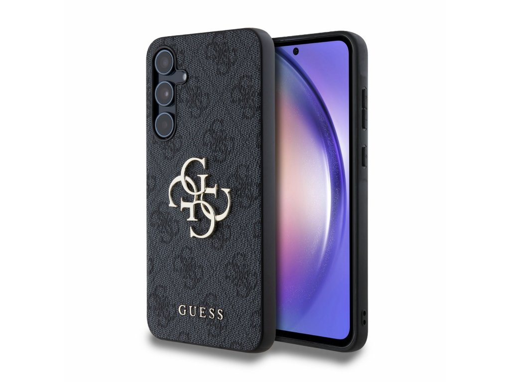 Guess PU 4G Metal Logo Zadní Kryt pro Samsung Galaxy A55 5G Grey