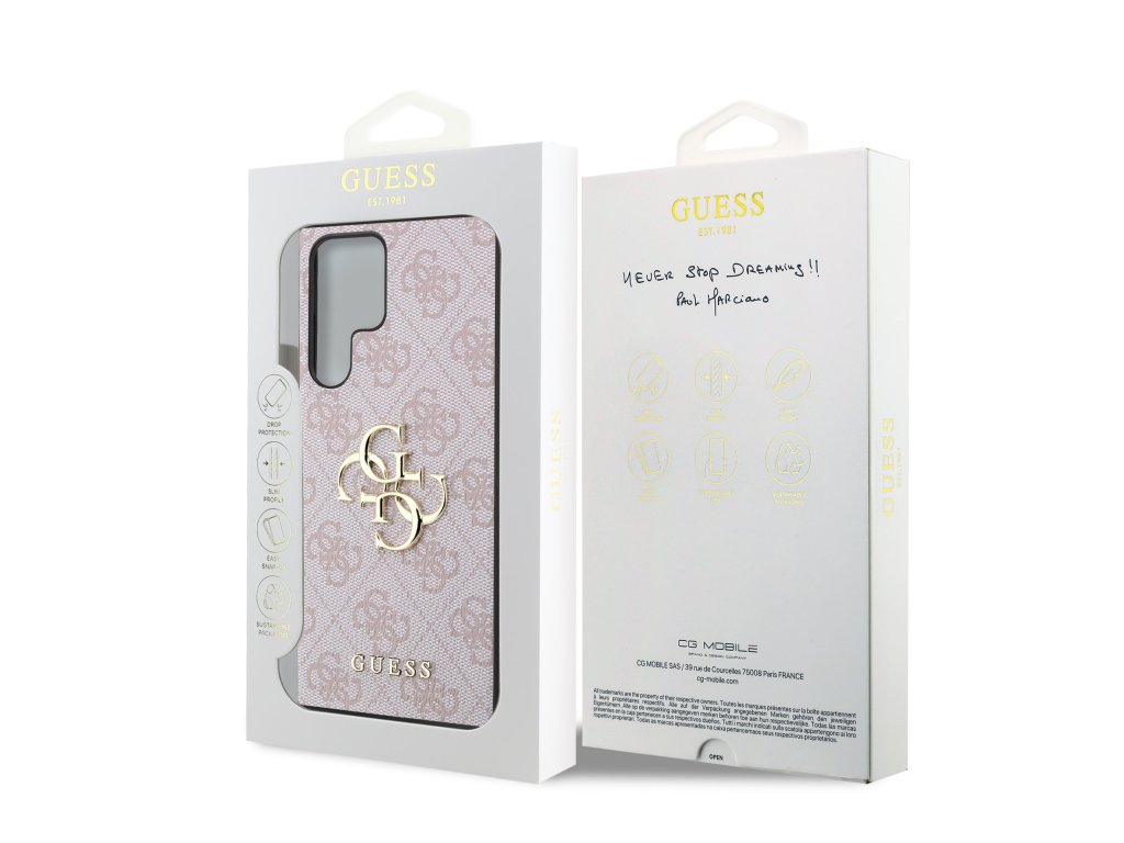 Prémiový zadní kryt Guess PU 4G Metal Logo se vyznačuje elegantním, charakteristickým 4G vzorem, doplněným o logo GUESS. Kryt je vyrobený z lehkého a odolného polyuretanu (PU) s povrchovou úpravou z PU kůže a nabízí tak nejen skvělou ochranu telefonu, ale také pohodlí při používání. Tato povrchová úprava zajišťuje pevný úchop, což minimalizuje riziko, že telefon vyklouzne z ruky. Díky přesnému tvaru perfektně sedí na telefonu a umožňuje snadný přístup ke všem tlačítkům a konektorům. Tento prvotřídní kryt doplněný výrazným 4G logem a je skvělou nabídkou pro lidi, kteří si v módě cení nejen exkluzivního vzhledu, ale také vysoké kvality a funkčnosti. Je to nezbytný doplněk pro každého, kdo hledá kombinaci elegance a prestiže. Klíčové vlastnosti: - Originál Guess - Dominantní kovové logo 4G - Lehký a odolný kryt z PU a PU kůže - Skvěle se drží v ruce a neklouže - Přesně kopíruje tvar telefonu a umožňuje snadný přístup k tlačítkům a konektorům. - Chrání telefon před prachem a poškrábáním - Luxusní doplněk pro váš telefon i outfitDoplňkové parametry