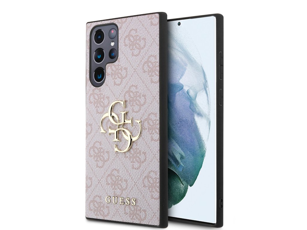 Guess PU 4G Metal Logo Zadní Kryt pro Samsung Galaxy S24 Ultra Pink