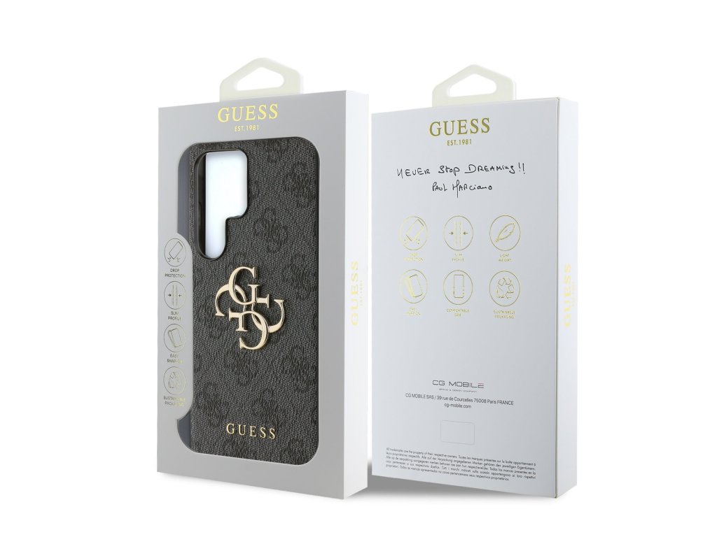 Prémiový zadní kryt Guess PU 4G Metal Logo se vyznačuje elegantním, charakteristickým 4G vzorem, doplněným o logo GUESS. Kryt je vyrobený z lehkého a odolného polyuretanu (PU) s povrchovou úpravou z PU kůže a nabízí tak nejen skvělou ochranu telefonu, ale také pohodlí při používání. Tato povrchová úprava zajišťuje pevný úchop, což minimalizuje riziko, že telefon vyklouzne z ruky. Díky přesnému tvaru perfektně sedí na telefonu a umožňuje snadný přístup ke všem tlačítkům a konektorům. Tento prvotřídní kryt doplněný výrazným 4G logem a je skvělou nabídkou pro lidi, kteří si v módě cení nejen exkluzivního vzhledu, ale také vysoké kvality a funkčnosti. Je to nezbytný doplněk pro každého, kdo hledá kombinaci elegance a prestiže. Klíčové vlastnosti: - Originál Guess - Dominantní kovové logo 4G - Lehký a odolný kryt z PU a PU kůže - Skvěle se drží v ruce a neklouže - Přesně kopíruje tvar telefonu a umožňuje snadný přístup k tlačítkům a konektorům. - Chrání telefon před prachem a poškrábáním - Luxusní doplněk pro váš telefon i outfitDoplňkové parametry