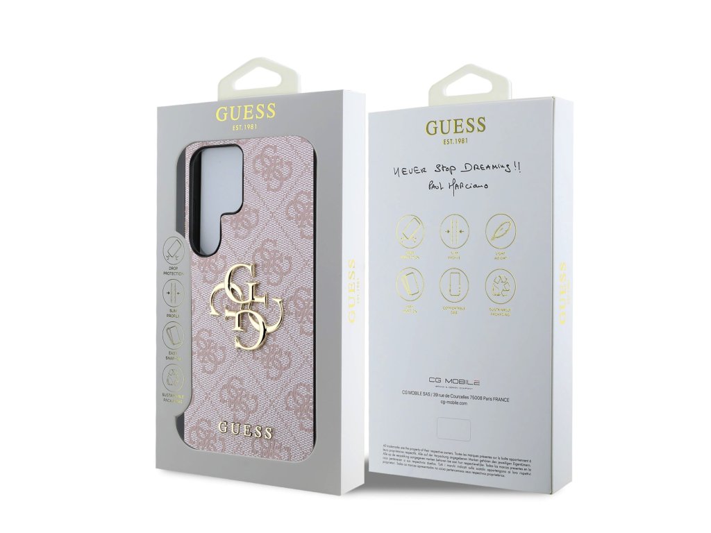 Guess PU 4G Metal Logo Zadní Kryt pro Samsung Galaxy S25 Ultra Pink