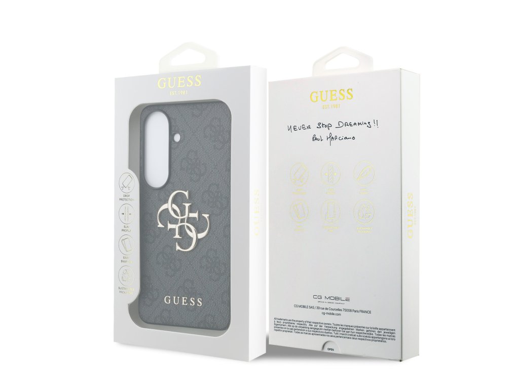 Prémiový zadní kryt Guess PU 4G Metal Logo se vyznačuje elegantním, charakteristickým 4G vzorem, doplněným o logo GUESS. Kryt je vyrobený z lehkého a odolného polyuretanu (PU) s povrchovou úpravou z PU kůže a nabízí tak nejen skvělou ochranu telefonu, ale také pohodlí při používání. Tato povrchová úprava zajišťuje pevný úchop, což minimalizuje riziko, že telefon vyklouzne z ruky. Díky přesnému tvaru perfektně sedí na telefonu a umožňuje snadný přístup ke všem tlačítkům a konektorům. Tento prvotřídní kryt doplněný výrazným 4G logem a je skvělou nabídkou pro lidi, kteří si v módě cení nejen exkluzivního vzhledu, ale také vysoké kvality a funkčnosti. Je to nezbytný doplněk pro každého, kdo hledá kombinaci elegance a prestiže. Klíčové vlastnosti: - Originál Guess - Dominantní kovové logo 4G - Lehký a odolný kryt z PU a PU kůže - Skvěle se drží v ruce a neklouže - Přesně kopíruje tvar telefonu a umožňuje snadný přístup k tlačítkům a konektorům. - Chrání telefon před prachem a poškrábáním - Luxusní doplněk pro váš telefon i outfitDoplňkové parametry
