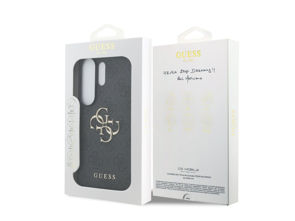 Prémiový zadní kryt Guess PU 4G Metal Logo se vyznačuje elegantním, charakteristickým 4G vzorem, doplněným o logo GUESS. Kryt je vyrobený z lehkého a odolného polyuretanu (PU) s povrchovou úpravou z PU kůže a nabízí tak nejen skvělou ochranu telefonu, ale také pohodlí při používání. Tato povrchová úprava zajišťuje pevný úchop, což minimalizuje riziko, že telefon vyklouzne z ruky. Díky přesnému tvaru perfektně sedí na telefonu a umožňuje snadný přístup ke všem tlačítkům a konektorům. Tento prvotřídní kryt doplněný výrazným 4G logem a je skvělou nabídkou pro lidi, kteří si v módě cení nejen exkluzivního vzhledu, ale také vysoké kvality a funkčnosti. Je to nezbytný doplněk pro každého, kdo hledá kombinaci elegance a prestiže. Klíčové vlastnosti: - Originál Guess - Dominantní kovové logo 4G - Lehký a odolný kryt z PU a PU kůže - Skvěle se drží v ruce a neklouže - Přesně kopíruje tvar telefonu a umožňuje snadný přístup k tlačítkům a konektorům. - Chrání telefon před prachem a poškrábáním - Luxusní doplněk pro váš telefon i outfitDoplňkové parametry