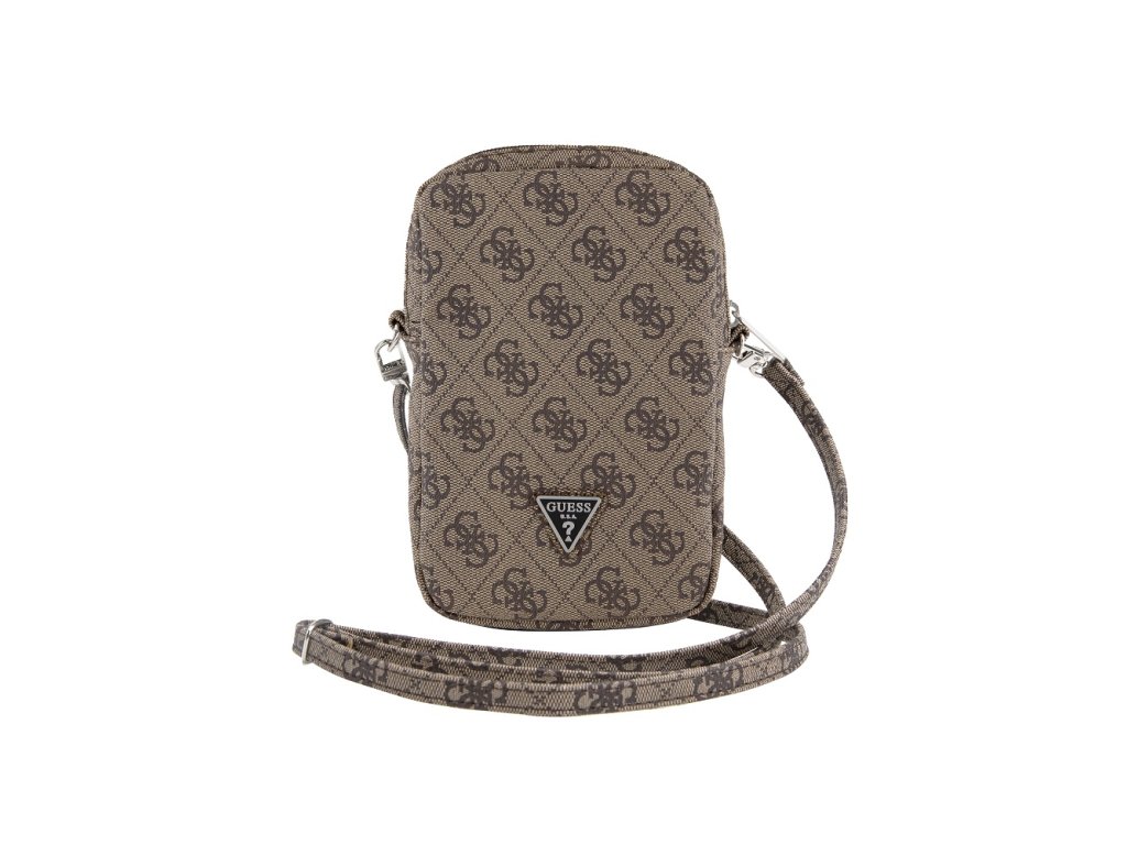 Guess PU 4G Triangle Logo Taška na Telefon se Zipem Brown