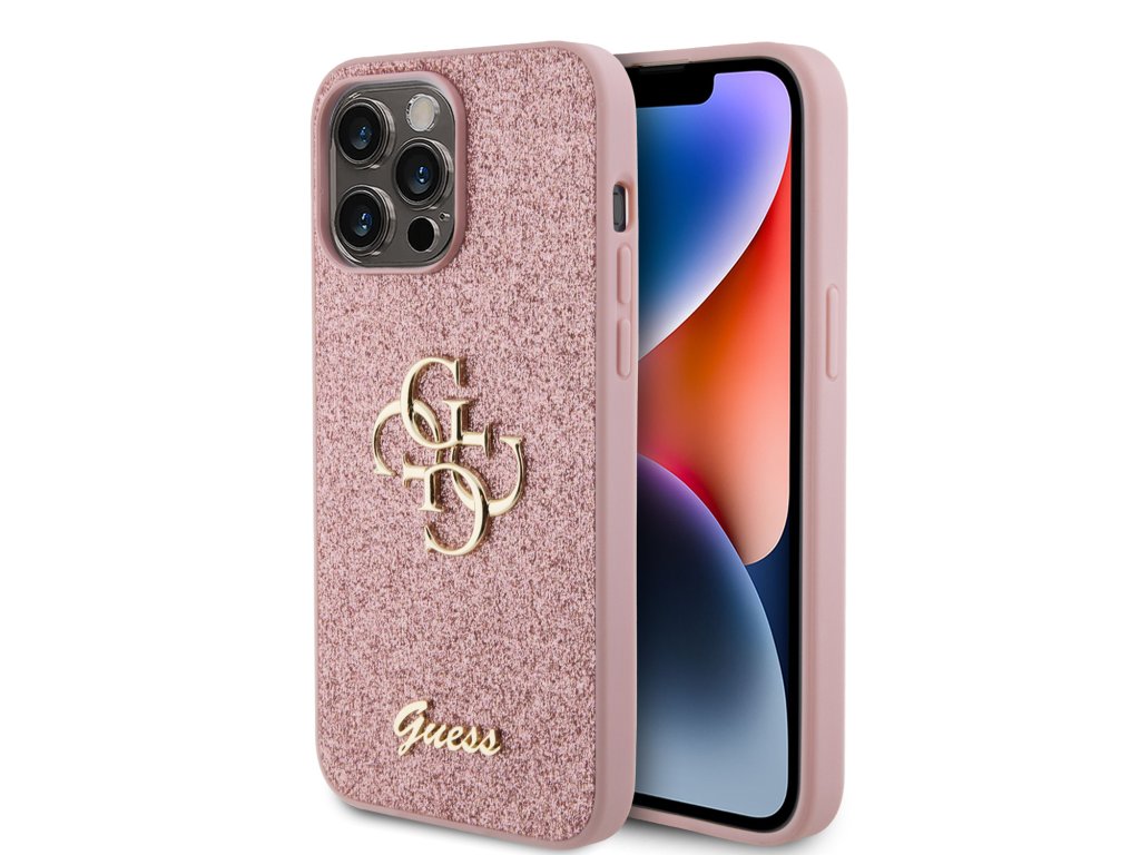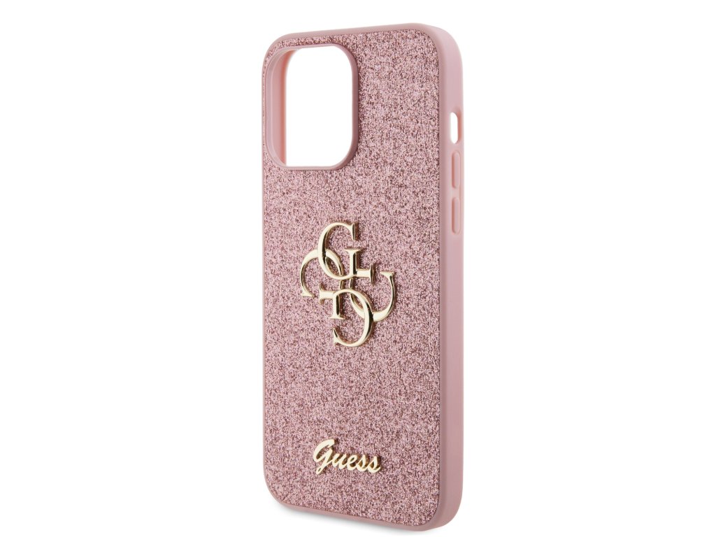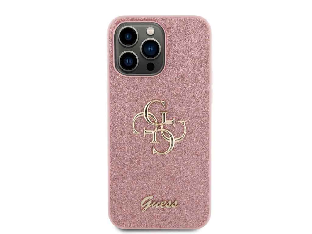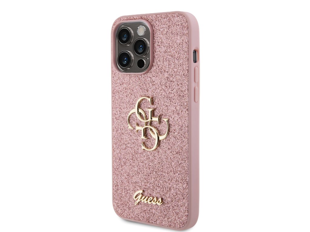 Guess PU Fixed Glitter 4G Metal Logo Zadní Kryt pro iPhone 15 Pro Max Pink