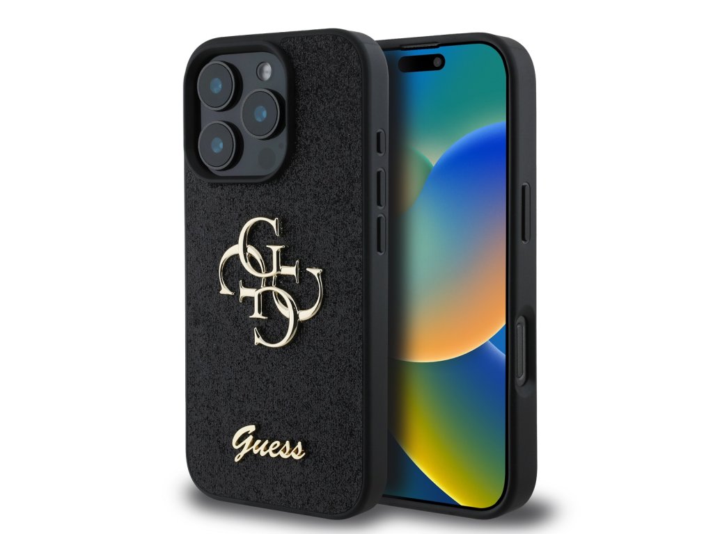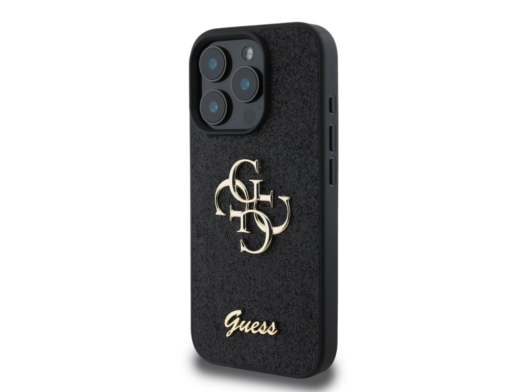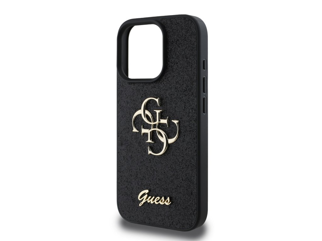 Guess PU Fixed Glitter 4G Metal Logo Zadní Kryt pro iPhone 16 Pro Max Black