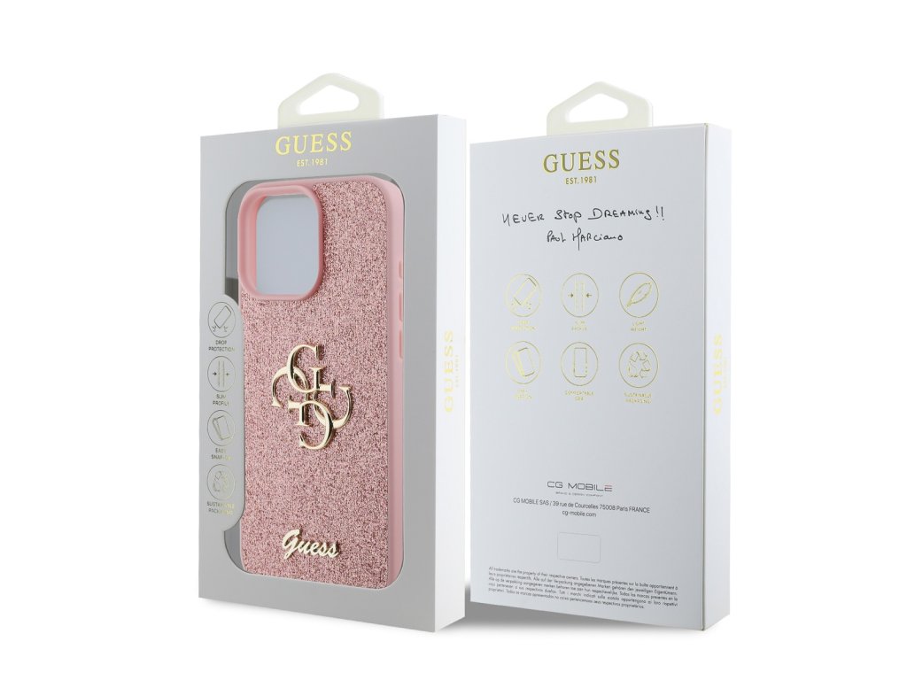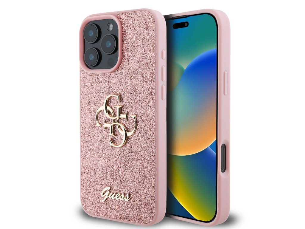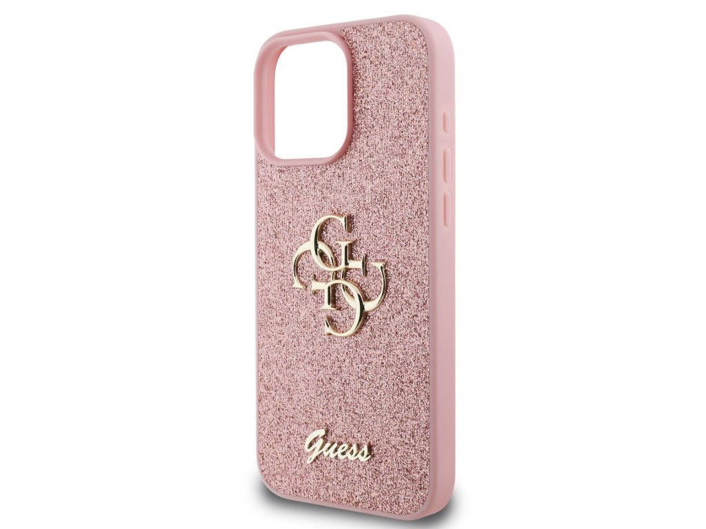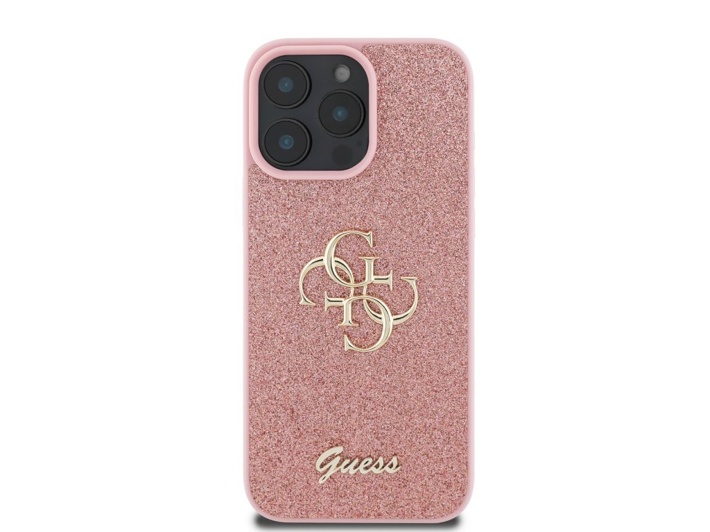 Guess PU Fixed Glitter 4G Metal Logo Zadní Kryt pro iPhone 16 Pro Max Pink