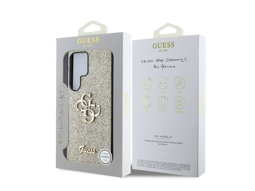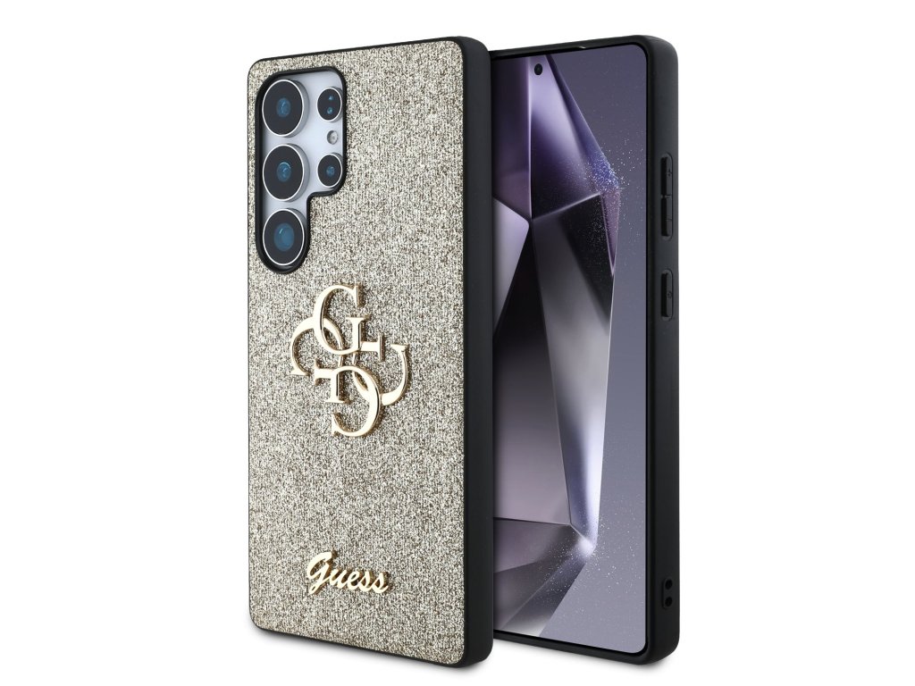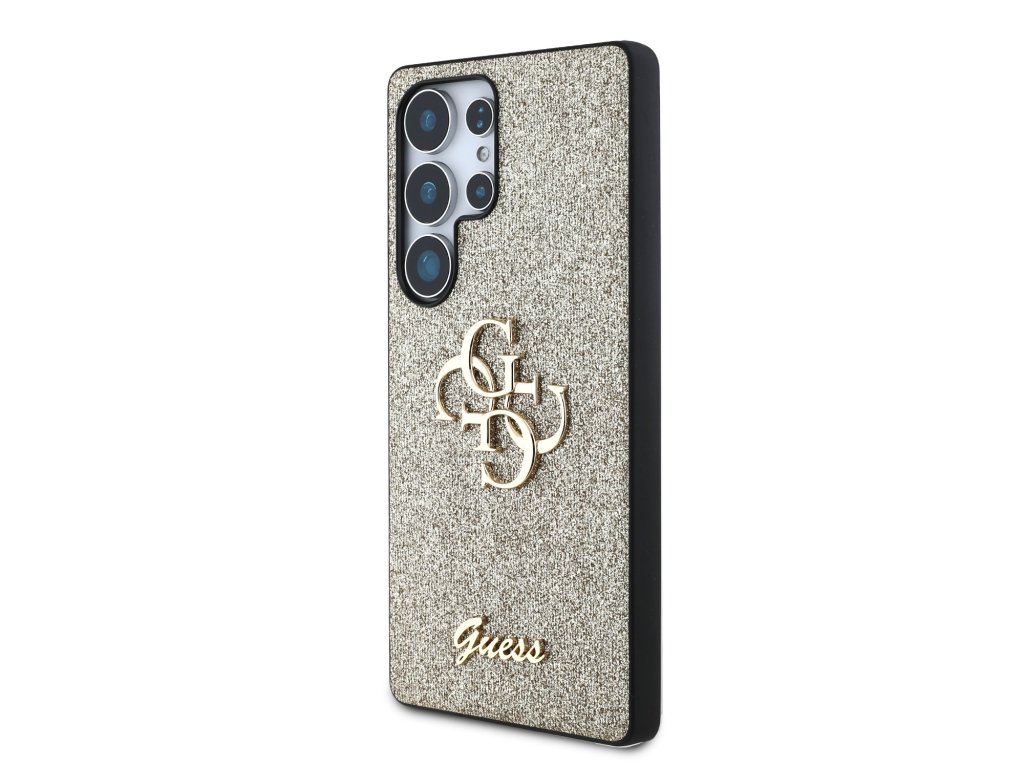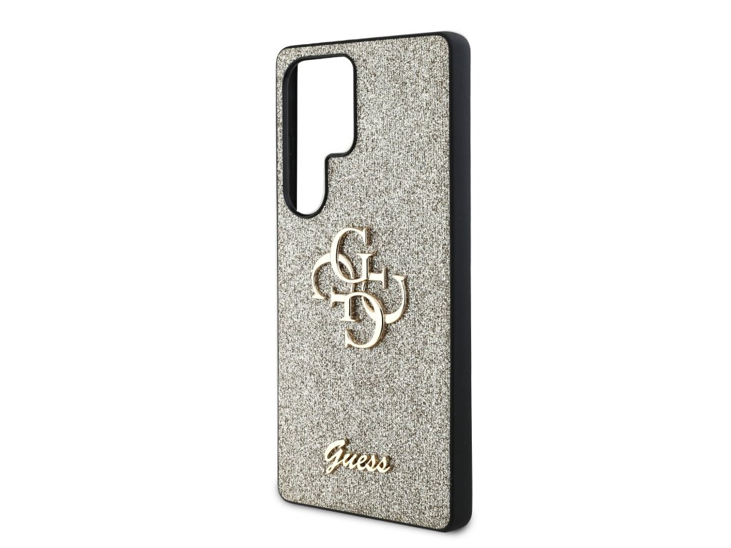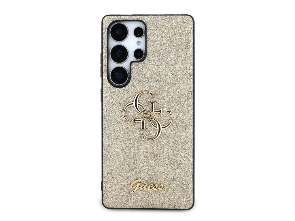 Guess PU Fixed Glitter 4G Metal Logo Zadní Kryt pro Samsung Galaxy S25 Ultra Gold