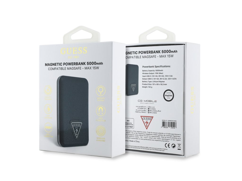 Guess PU Grained Triangle Logo MagSafe Powerbanka 5000mAh Blue