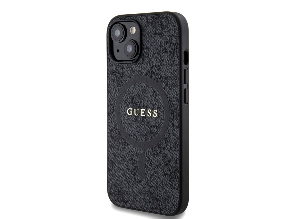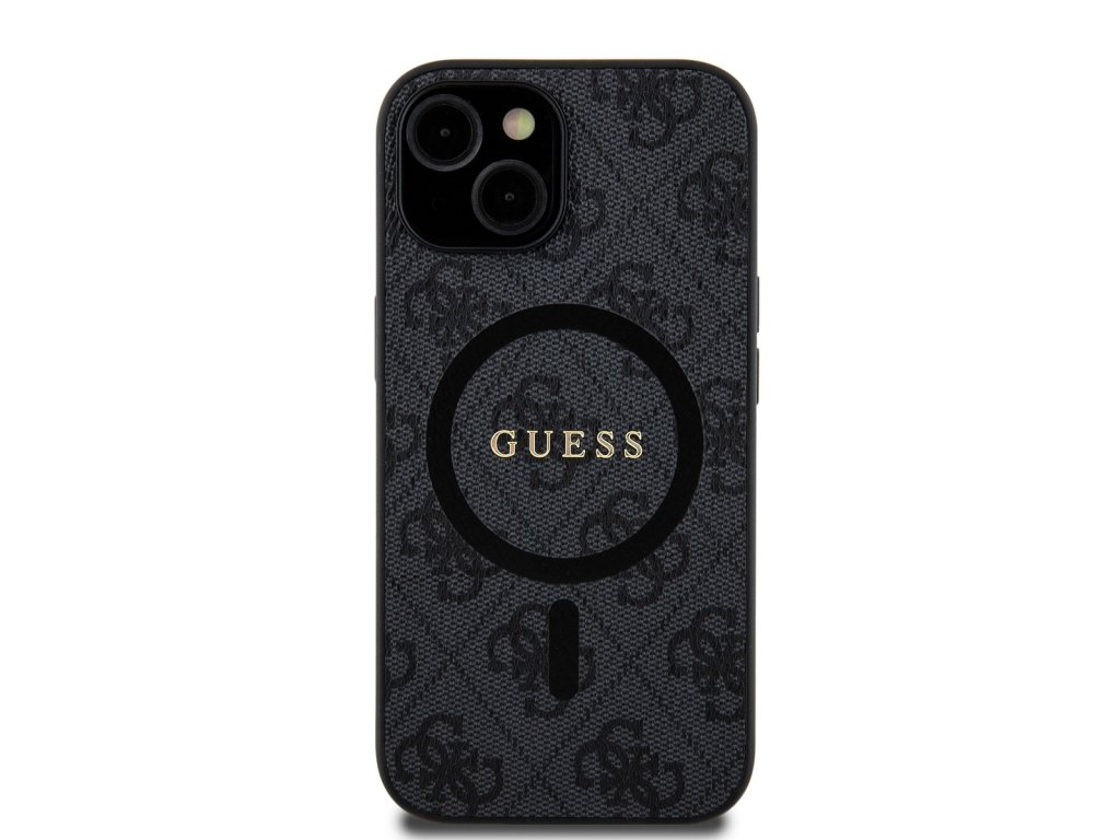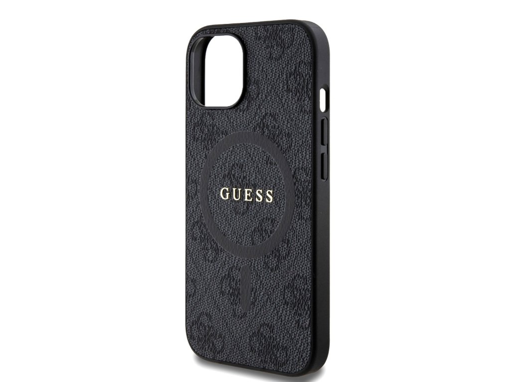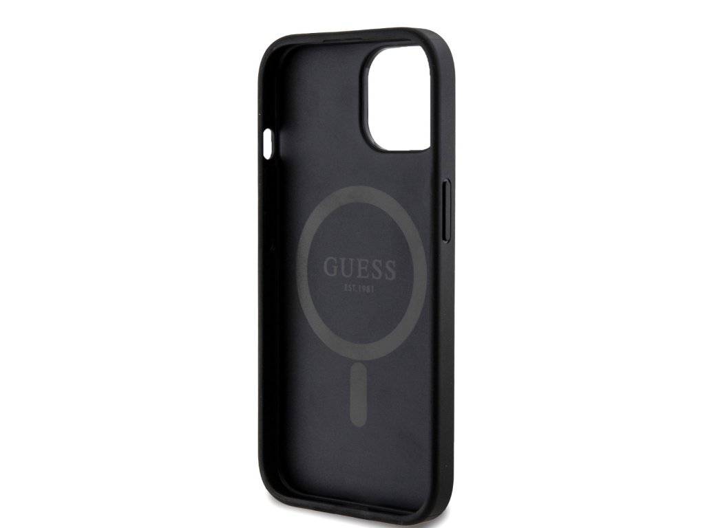 Guess PU Leather 4G Colored Ring MagSafe Zadní Kryt pro iPhone 15 Black