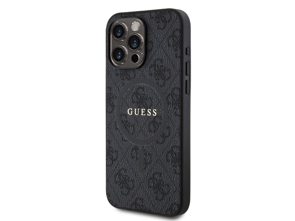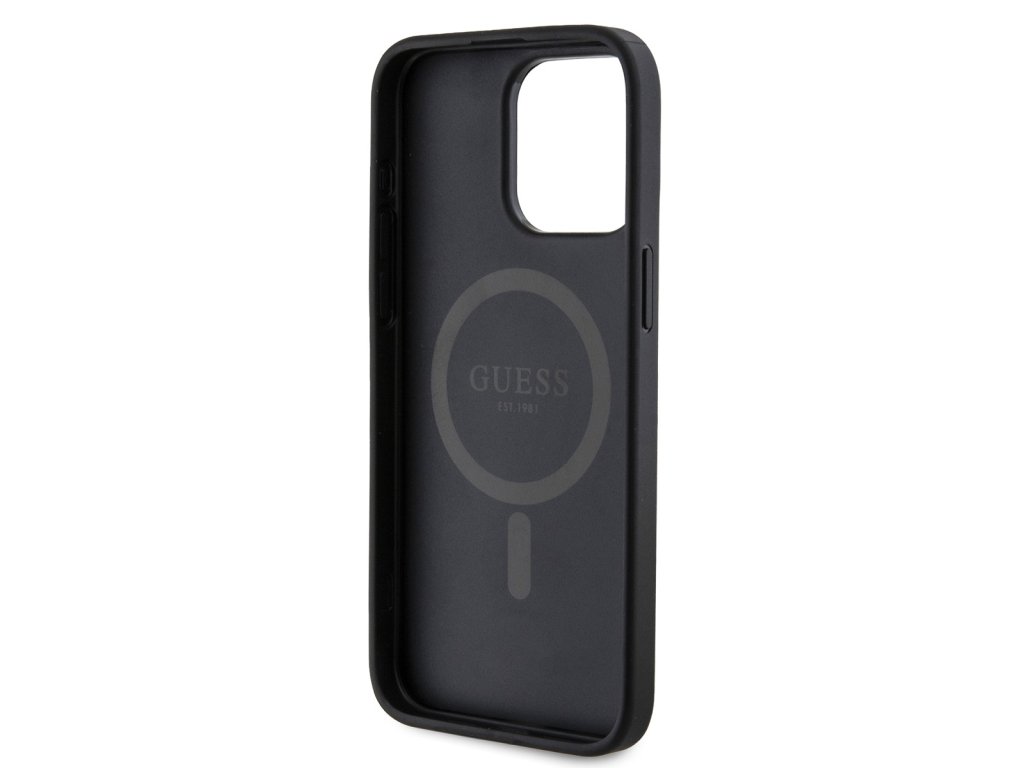 Guess PU Leather 4G Colored Ring MagSafe Zadní Kryt pro iPhone 15 Pro Black