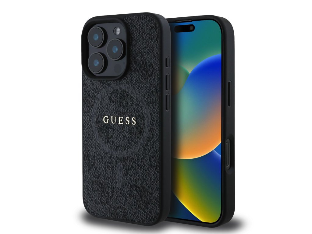 Guess PU Leather 4G Colored Ring MagSafe Zadní Kryt pro iPhone 16 Pro Max Black