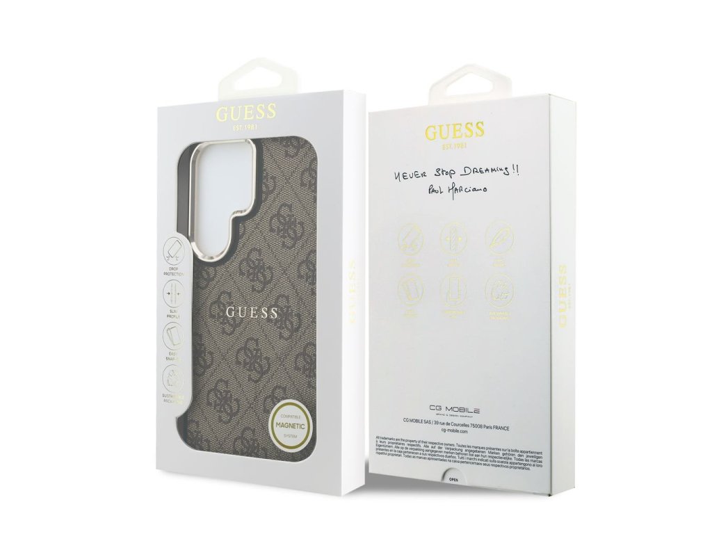 Guess PU Leather 4G Gold Frame Magnetic Zadní Kryt pro Samsung Galaxy S26 Ultra Brown