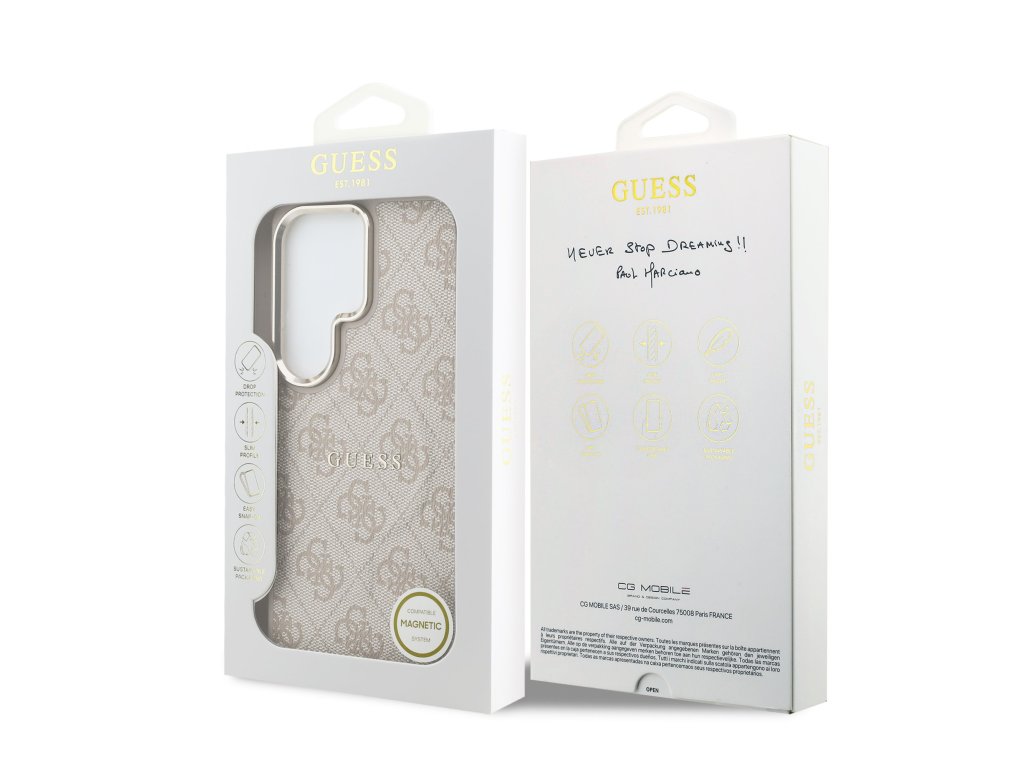 Guess PU Leather 4G Gold Frame Magnetic Zadní Kryt pro Samsung Galaxy S26 Ultra Pink