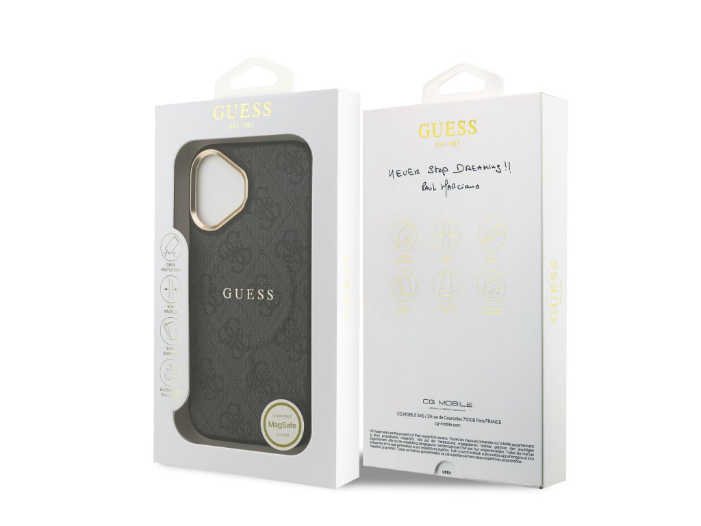 Guess PU Leather 4G Gold Frame MagSafe Zadní Kryt pro iPhone 17 Black