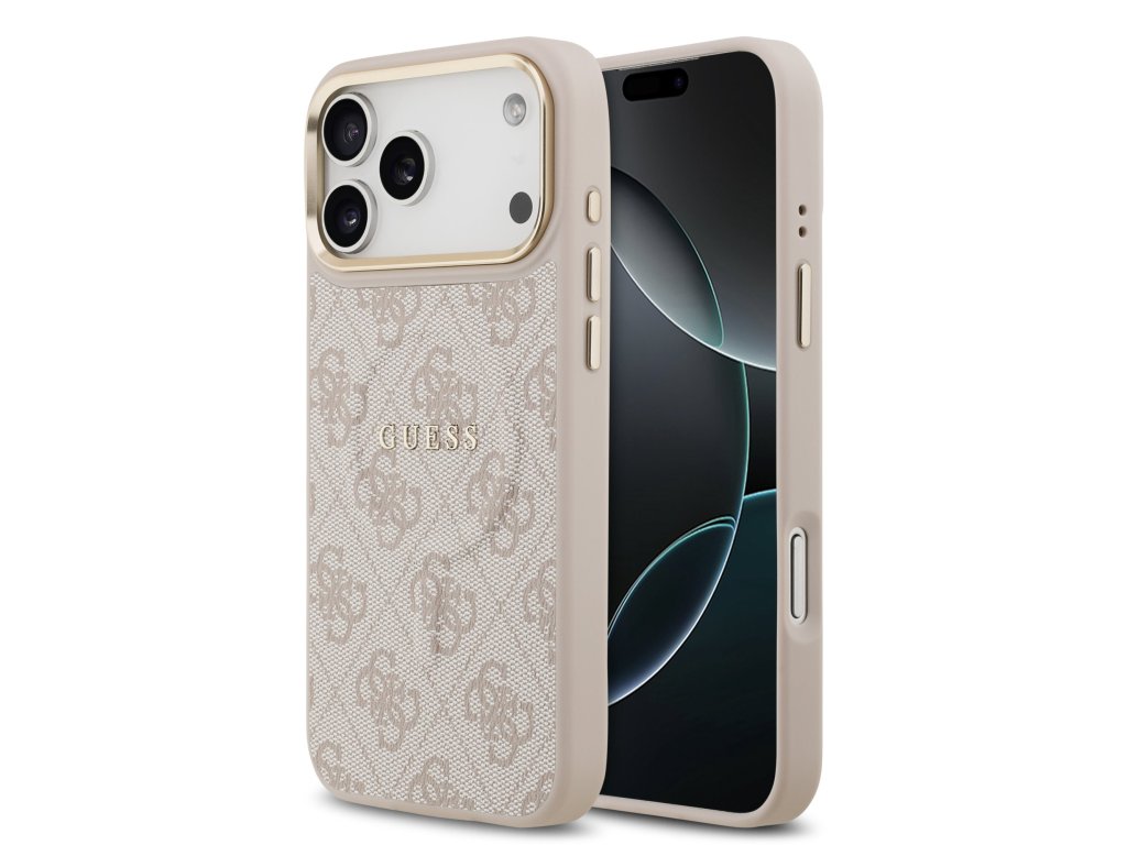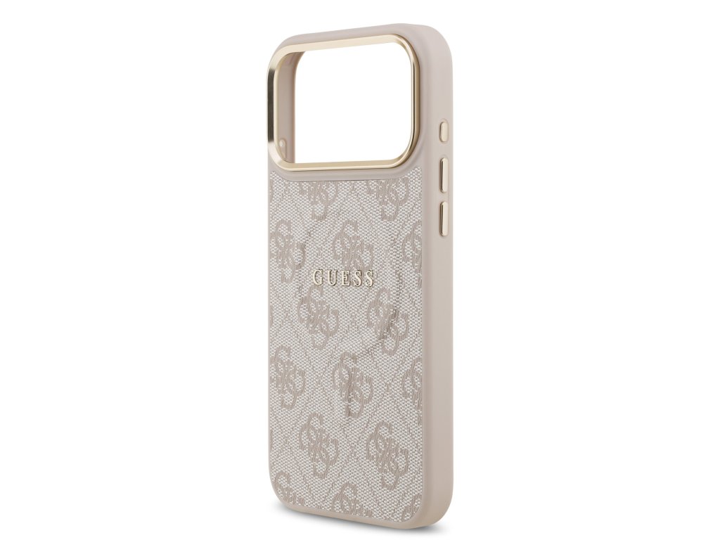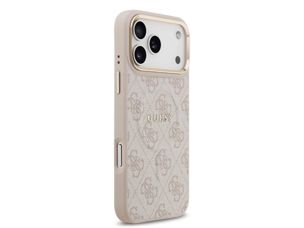 Guess PU Leather 4G Gold Frame MagSafe Zadní Kryt pro iPhone 17 Pro Max Pink