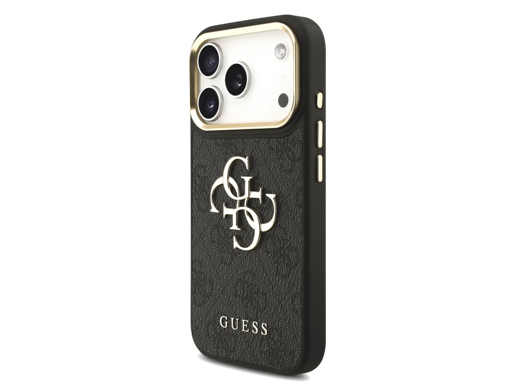 Guess PU Leather 4G Metal Logo Gold Frame Zadní Kryt pro iPhone 17 Pro Black