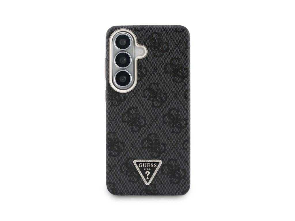 Guess PU Leather 4G Strass Triangle Logo Gold Frame Magnetic Zadní Kryt pro Samsung Galaxy S26 Black