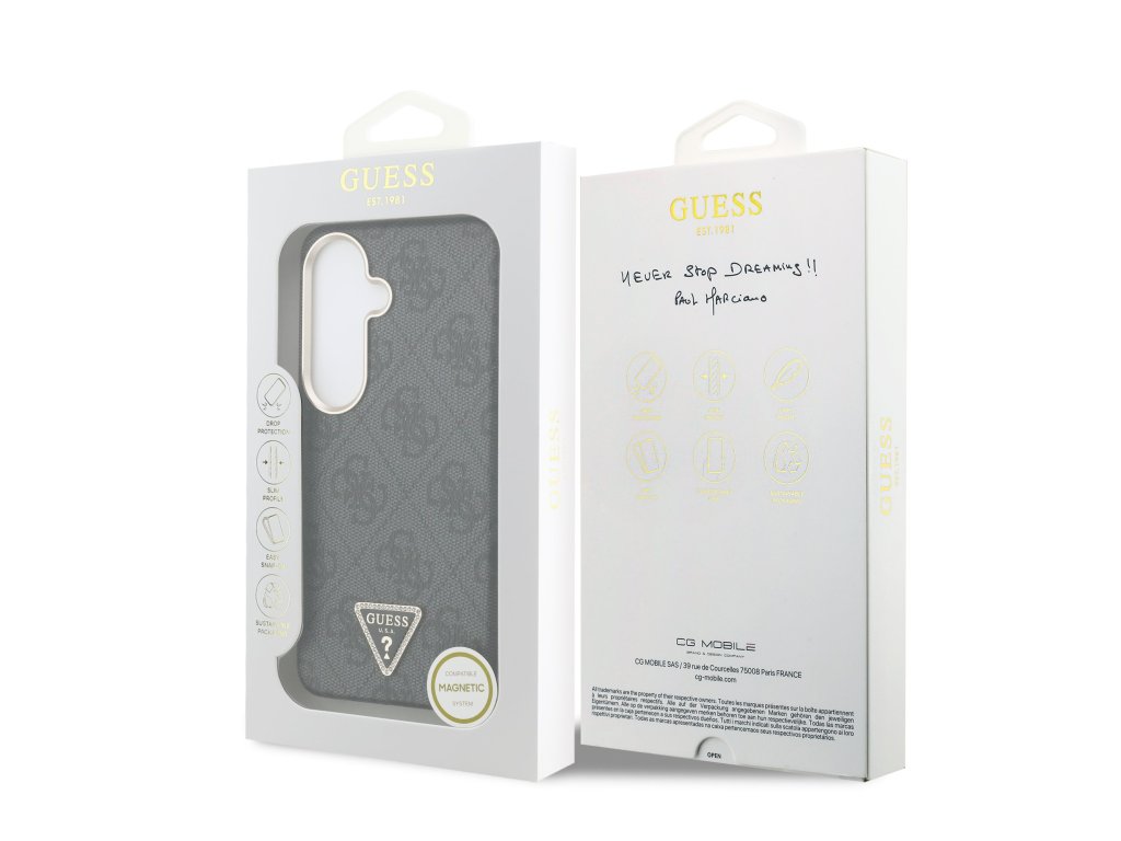 Guess PU Leather 4G Strass Triangle Logo Gold Frame zadní kryt je dokonalý doplněk pro váš telefon i váš outfit, který kombinuje funkčnost a styl v jednom. Je vyrobený z lehké a odolné PU umělé kůže a nabízí skvělou ochranu a pohodlí při používání. Povrchová úprava krytu zajišťuje, že se skvěle drží v ruce a neklouže, což minimalizuje riziko vyklouznutí telefonu. Díky přesnému tvaru perfektně sedí na telefonu a umožňuje snadný přístup ke všem tlačítkům a konektorům. Tento model je vybaven magnetickou funkcí, která umožňuje snadné a bezpečné uchycení k magnetickým držákům - například v autě. Magnet uvnitř krytu drží pevně, aniž by narušoval signál nebo funkčnost zařízení, a přitom zachovává štíhlý profil celého pouzdra. Jedná se tak o praktické řešení pro každého. Guess „4G“ elegantní potisk doplněným o zlaté triangle logo GUESS nabízí nejen luxusní, ale také nápaditý design. Rámeček zadního fotoaparátu je navíc zdoben elegantním zlatým provedením, který krytu dodává ještě luxusnější vzhled. Pokud tedy hledáte kryt, který kombinuje eleganci a funkčnost, je tento kousek od Guess tou pravou volbou pro vás. Klíčové vlastnosti: - Originál Guess - Lehký a odolný kryt z PU umělé kůže - Kovové trojúhelníkové logo Guess na zadní straně - Skvěle se drží v ruce a neklouže - Integrovaná magnetická funkce - vhodné pro použití s magnetickými držáky - Přesně kopíruje tvar telefonu a umožňuje snadný přístup k tlačítkům a konektorům. - Chrání telefon před prachem a poškrábáním - Elegantní a funkční doplněk pro váš telefon i outfitDoplňkové parametry