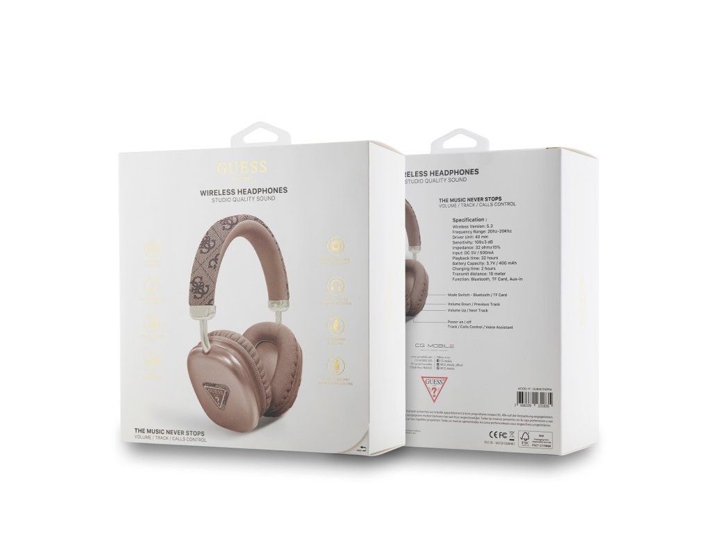 Guess PU Leather 4G Triangle Logo Bluetooth Stereo Headphone Brown