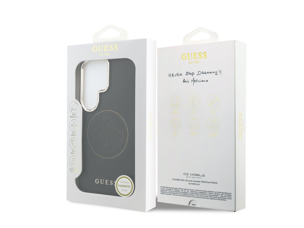 Guess PU Perforated 4G Magnetic zadní kryt je dokonalý doplněk pro váš telefon i váš outfit, který kombinuje funkčnost a styl v jednom. Je vyrobený z lehké a odolné PU umělé kůže a nabízí skvělou ochranu telefonu i pohodlí při používání. Povrchová úprava krytu zajišťuje, že se skvěle drží v ruce a neklouže, což minimalizuje riziko vyklouznutí telefonu. Díky přesnému tvaru perfektně sedí na telefonu a umožňuje snadný přístup ke všem tlačítkům a konektorům. Tento model je vybaven magnetickou funkcí, která umožňuje snadné a bezpečné uchycení k magnetickým držákům - například v autě. Magnet uvnitř krytu drží pevně, aniž by narušoval signál nebo funkčnost zařízení, a přitom zachovává štíhlý profil celého pouzdra. Jedná se tak o praktické řešení pro každého. Perforated 4G Logo na zadní straně krytu dodává nepřehlédnutelnou eleganci a styl. Pokud tedy hledáte kryt, který kombinuje eleganci, funkčnost a praktické využití i na cestách, je tento kousek od Guess tou pravou volbou pro vás. Klíčové vlastnosti: - Originál Guess - Lehký a odolný kryt z PU umělé kůže - Skvěle se drží v ruce a neklouže - Integrovaná magnetická funkce - vhodné pro použití s magnetickými držáky - Přesně kopíruje tvar telefonu a umožňuje snadný přístup k tlačítkům a konektorům - Chrání telefon před prachem a poškrábáním - Elegantní a funkční doplněk pro váš telefon i outfitDoplňkové parametry