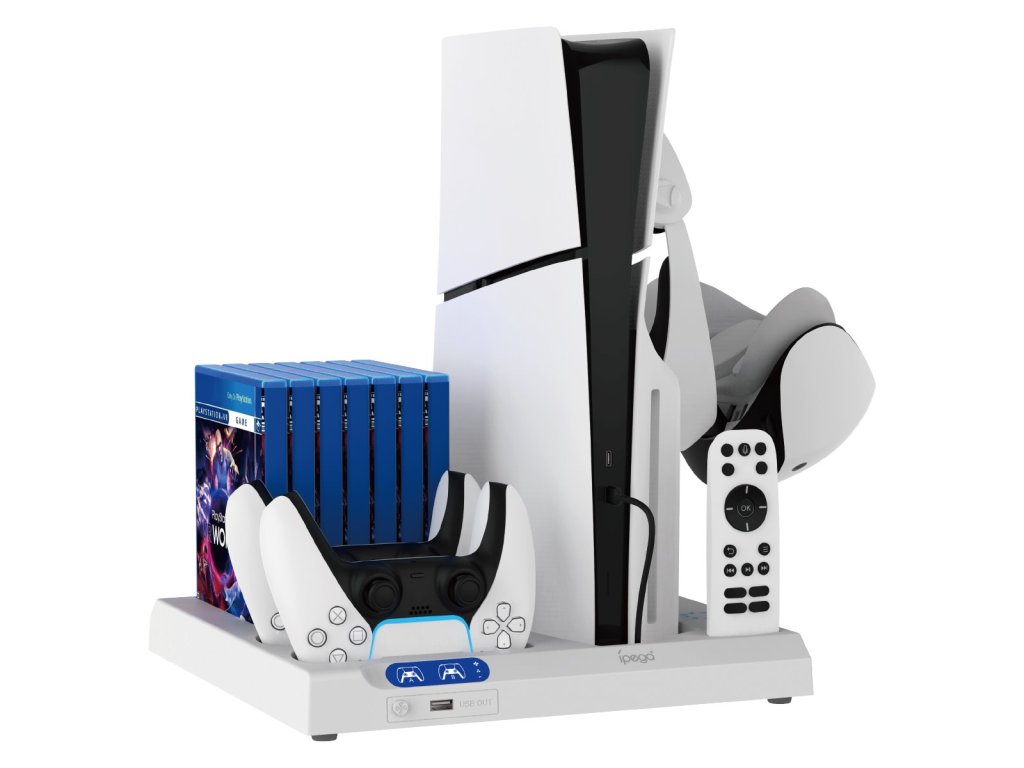 iPega P5S028 All-in-One Nabíjecí Stojan s Chlazením pro PS5/PS5 Slim/PS5 Pro White